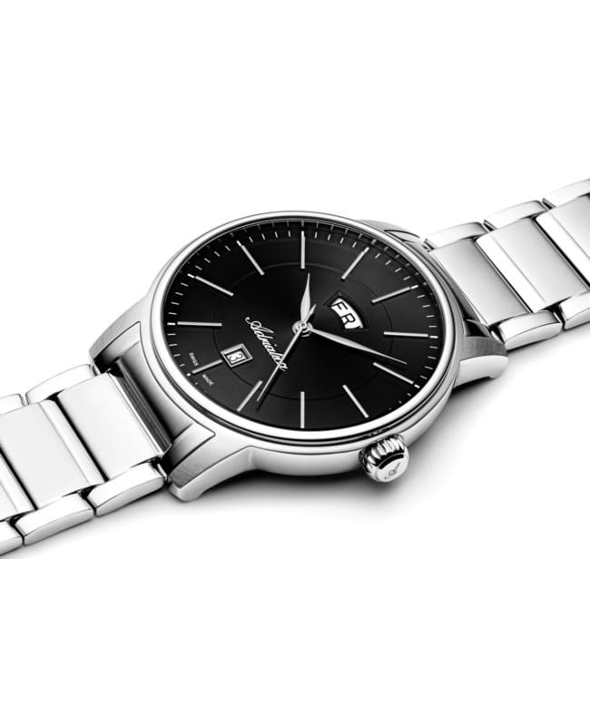 Часы Adriatica A1144.5114Q представляют собой идеальное сочетание элегантности и функциональности, разработанное для современных мужчин. Их стильный черный циферблат защищен сапфировым стекломСапфировое стеклоПрочный и надёжный материал из кристалла сапфира синтетического происхождения, характеризующийся особой твёрдостью и устойчивостью к царапинам и повреждениям., что придает дополнительную устойчивость к царапинам. Корпус из нержавеющей стали подчеркивает их изысканность и долговечность. Надежный кварцевый механизм с калибром RONDA 515 гарантирует точность времени, а водозащита WR 50 (5 ATM) обеспечивает защиту от воды в различных условиях. Браслет из нержавеющей стали с раскладной застёжкойРаскладная застёжкаТакой тип застёжки используется только на браслетах из металла. Она никогда не раскрывается полностью, происходит разделение на 2 и более частей. Раскладывающая застёжка снизит вероятность потери часов к минимуму., гармонично дополняет общий дизайн и обеспечивает комфортное ношение на запястье. Окошко даты находится в положении 6 часов. День недели отображается в положении 12 часов.