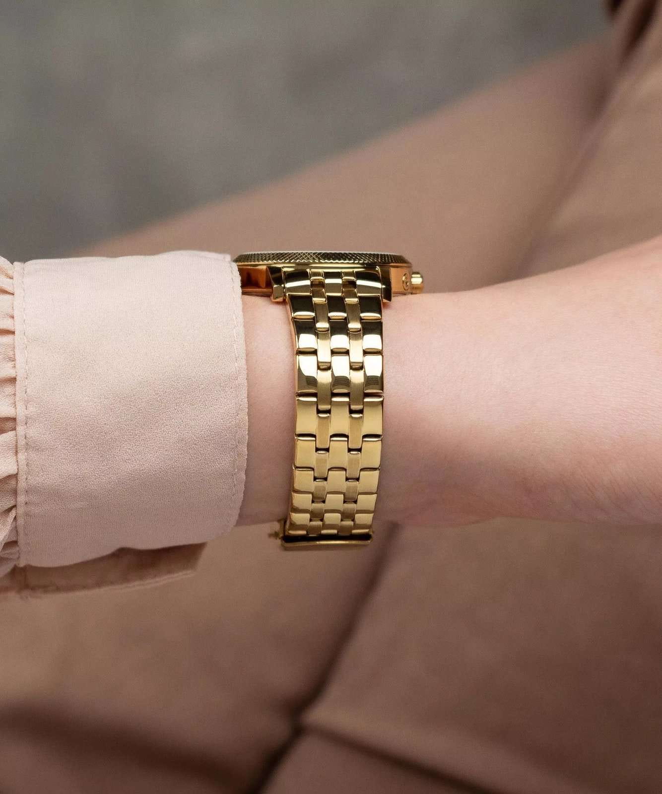 Женские часы Adriatica A3808.1117QF воплощают в себе утонченность и надежность швейцарского часового искусства. Эти часы идеально подойдут для тех, кто ценит стиль и качество в одном изделии. Серебристый циферблат защищен минеральным стекломМинеральное стеклоМинеральное стекло представляет собой искусственно выращенный минерал кварца. Такое стекло отличается особой устойчивостью к повреждениям и царапинам. Уступает по некоторым качествам сапфировому стеклу. и заключен в корпус, выполненный из нержавеющей стали с PVDPVDУльтратонкое покрытие наносится в технике вакуумного напыления, сочетает в себе нитрид титана особой прочности со слоем золота или оксида хрома. Несёт в себе декоративную или защитную функцию. покрытием золотого золота, диаметром 39 мм, которое придает дополнительную прочность и элегантный вид. Часы оснащены кварцевым механизмом, обеспечивающим высокую точность и надежность. Водозащита 50WR делает их устойчивыми к воздействию воды, что позволяет не беспокоиться о случайных брызгах. Стальной браслет с PVDPVDУльтратонкое покрытие наносится в технике вакуумного напыления, сочетает в себе нитрид титана особой прочности со слоем золота или оксида хрома. Несёт в себе декоративную или защитную функцию. покрытием с раскладной застёжкойРаскладная застёжкаТакой тип застёжки используется только на браслетах из металла. Она никогда не раскрывается полностью, происходит разделение на 2 и более частей. Раскладывающая застёжка снизит вероятность потери часов к минимуму. подчеркивает современный стиль и обеспечивает комфортное ношение. День недели и число отображается на отдельных циферблатах. Индикатор фазы Луны.