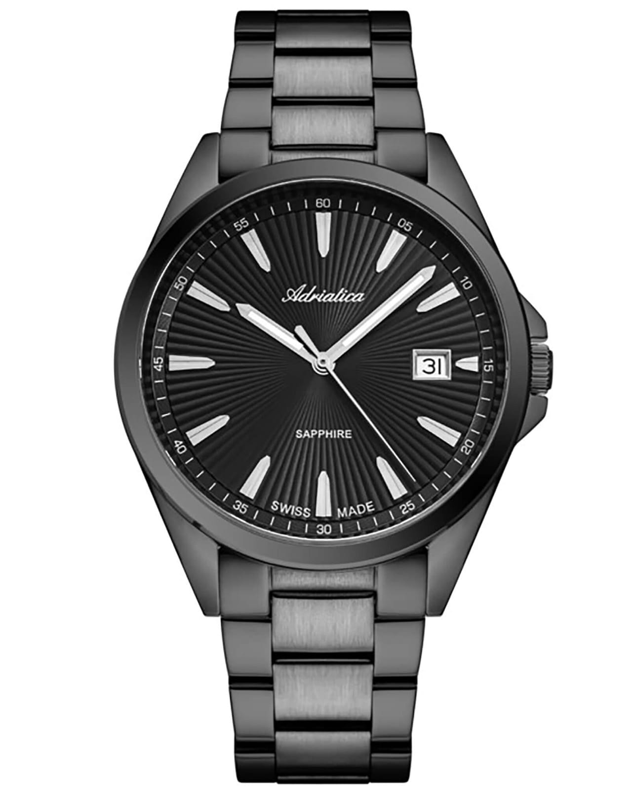 Мужские швейцарские кварцевые часы Adriatica A8332.S116Q, кварцевый механизм с высокой точностью. Сапфировое стеклоСапфировое стеклоПрочный и надёжный материал из кристалла сапфира синтетического происхождения, характеризующийся особой твёрдостью и устойчивостью к царапинам и повреждениям. устойчивое к появлению царапин, обладающее высокой прозрачностью. Класс водозащиты: 30 метров, позволит защитить корпус от случайных брызг или капель дождя. Корпус часов изготовлен из стали с PVD-покрытиемPVDУльтратонкое покрытие наносится в технике вакуумного напыления, сочетает в себе нитрид титана особой прочности со слоем золота или оксида хрома. Несёт в себе декоративную или защитную функцию.. Стальной браслет на раскладной застёжкеРаскладная застёжкаТакой тип застёжки используется только на браслетах из металла. Она никогда не раскрывается полностью, происходит разделение на 2 и более частей. Раскладывающая застёжка снизит вероятность потери часов к минимуму. с PVD-покрытиемPVDУльтратонкое покрытие наносится в технике вакуумного напыления, сочетает в себе нитрид титана особой прочности со слоем золота или оксида хрома. Несёт в себе декоративную или защитную функцию.. Стрелки с люминесцентным покрытиемЛюминесцентное покрытиеПозволяет считывать показания времени в темноте. Производители наносят на стрелки, часовые индексы, безель или поверхность циферблата светонакопительный состав, дающий холодное свечение.. Окошко даты находится в положении 3 часа.