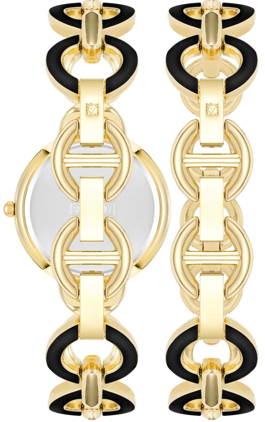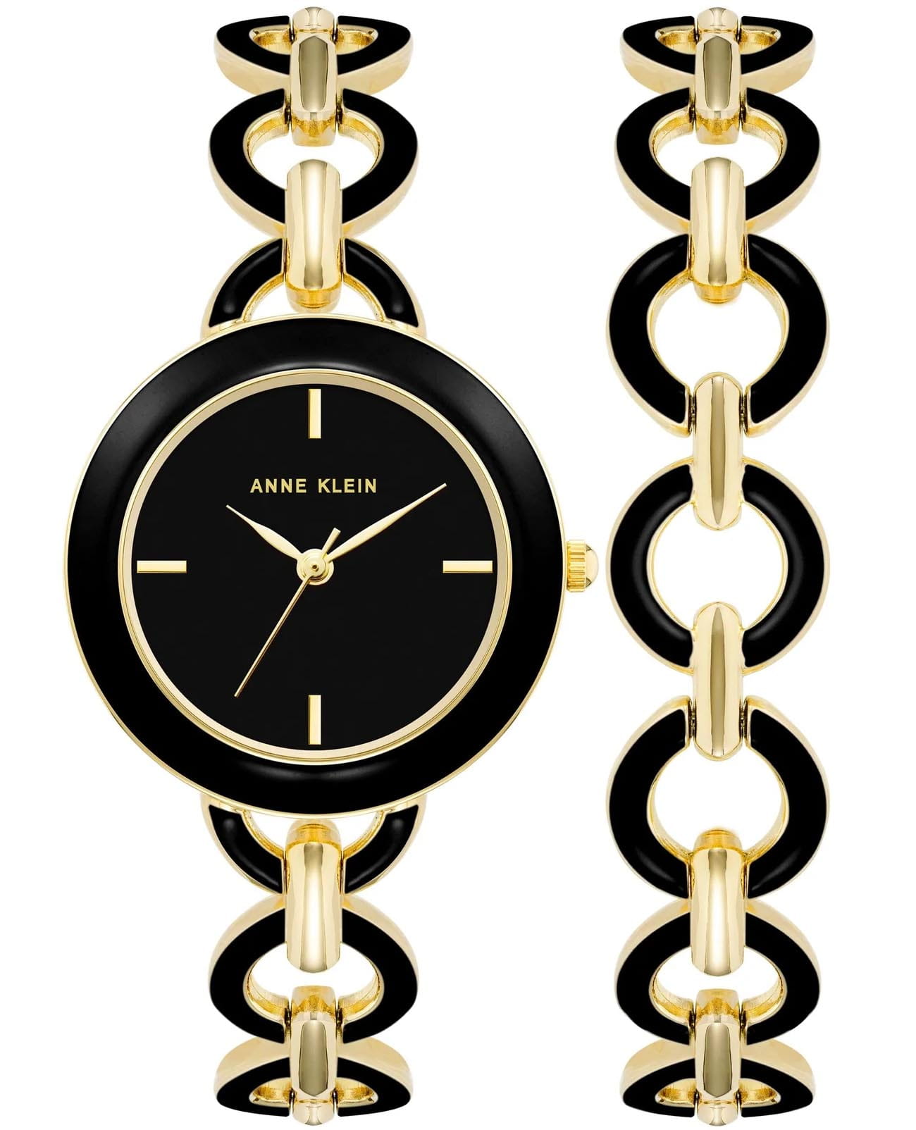 Женские американские наручные часы Anne Klein Box Set 4066BKST, кварцевый механизм с высокой точностью с минеральным стекломМинеральное стеклоМинеральное стекло представляет собой искусственно выращенный минерал кварца. Такое стекло отличается особой устойчивостью к повреждениям и царапинам. Уступает по некоторым качествам сапфировому стеклу.. Класс водозащиты: 30 метров, позволит защитить корпус от случайных брызг или капель дождя. Корпус часов изготовлен из стали с IP-покрытиемIP-покрытиеМетод ионного напыления. Демонстрирует повышенную устойчивость к истиранию, окислению и химическим веществам. Под воздействием высокого давления и температуры около 1500°C молекулы металла надёжно соединяются с частицами корпуса часов.. Стальной браслет на ювелирной застёжке с IP-покрытиемIP-покрытиеМетод ионного напыления. Демонстрирует повышенную устойчивость к истиранию, окислению и химическим веществам. Под воздействием высокого давления и температуры около 1500°C молекулы металла надёжно соединяются с частицами корпуса часов.. В комплекте аксессуар браслет.