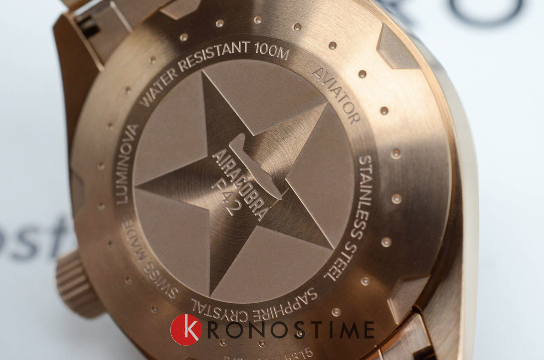 Aviator Airacobra V.1.22.2.152.5 — швейцарские часы в классике авиадизайна, сочетающие безупречную читаемость и высокую надёжность. Корпус диаметром 42 мм выполнен из нержавеющей стали с PVD-покрытиемPVDУльтратонкое покрытие наносится в технике вакуумного напыления, сочетает в себе нитрид титана особой прочности со слоем золота или оксида хрома. Несёт в себе декоративную или защитную функцию. — это придаёт модели благородный и уверенный облик.