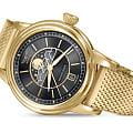 Стальной браслет миланского плетения с PVD-покрытиемPVDУльтратонкое покрытие наносится в технике вакуумного напыления, сочетает в себе нитрид титана особой прочности со слоем золота или оксида хрома. Несёт в себе декоративную или защитную функцию. на раскладном замкеРаскладной замокДанный вариант застежки используется только на часах с металлическим браслетом. Отличительная особенность такого крепления в том, что длина браслета становится универсальной и вы можете самостоятельно отрегулировать нужный вам размер – застежка просто двигается по браслету часов., сочетая комфорт, элегантность и практичность.