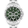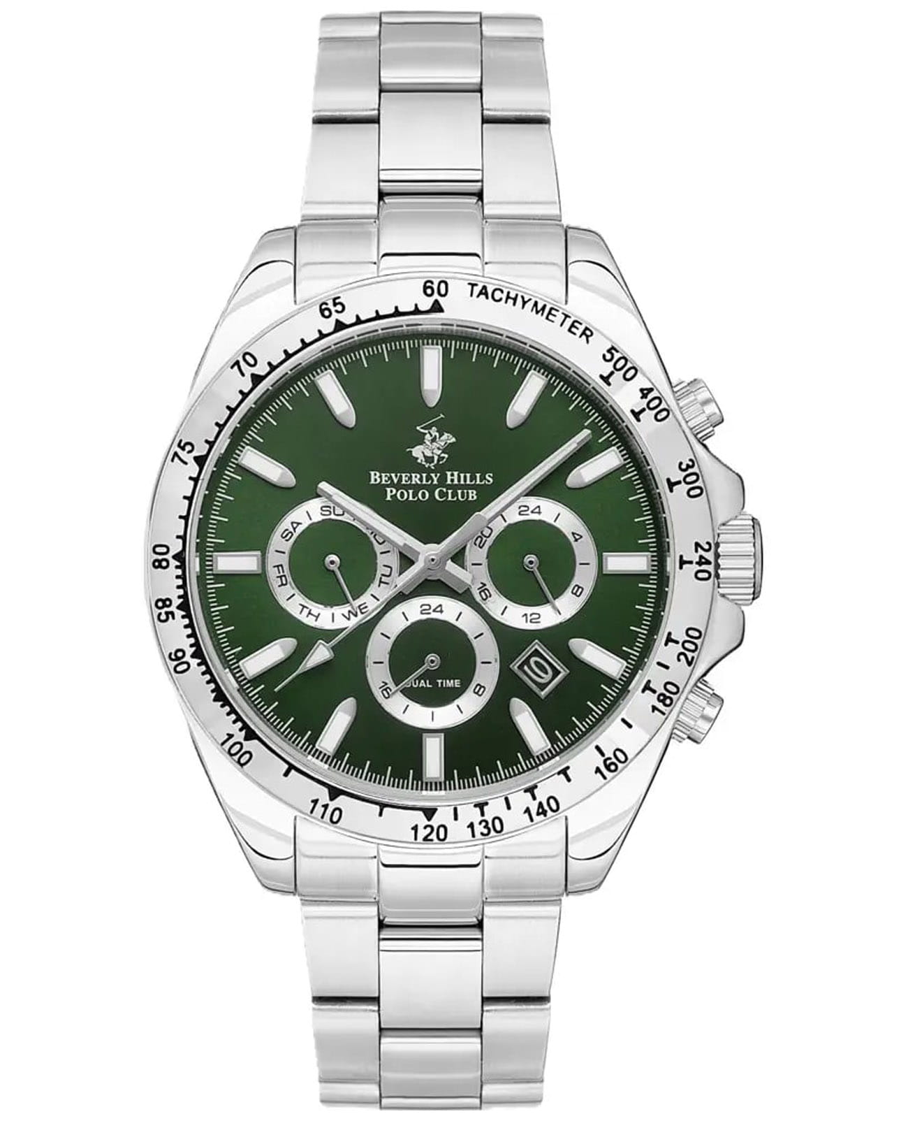 Часы Beverly Hills Polo CluBP3127X.370 — это стильный мужской аксессуар, который сочетает элегантный дизайн и практичность. Корпус выполнен из нержавеющей стали с серебристым покрытием, что обеспечивает долговечность и утончённый внешний вид. Зеленый циферблат с аналоговой индикацией времени украшен дополнительными индикаторами для хронографа и даты. Циферблат защищён минеральным стекломМинеральное стеклоМинеральное стекло представляет собой искусственно выращенный минерал кварца. Такое стекло отличается особой устойчивостью к повреждениям и царапинам. Уступает по некоторым качествам сапфировому стеклу., устойчивым к повреждениям.