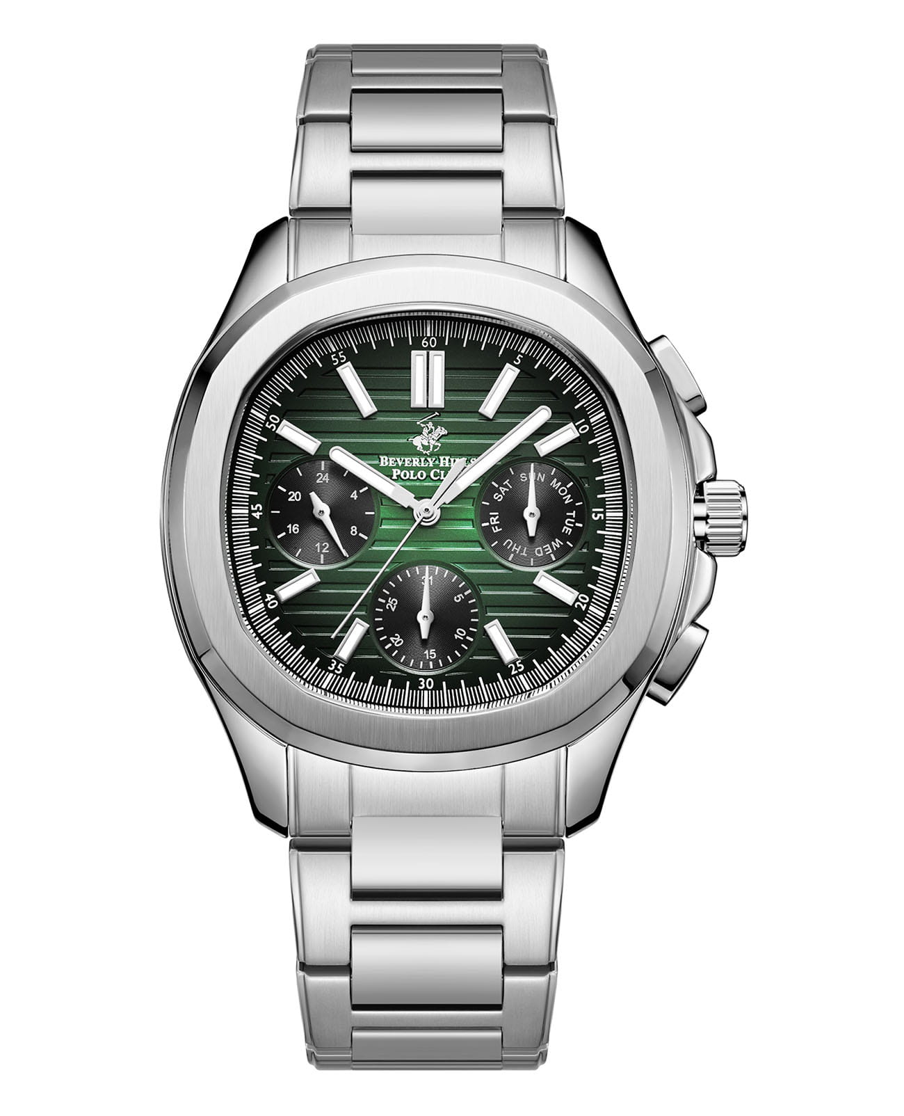 Мужские кварцевые часы Beverly Hills Polo Club BP3212X.370 — это стильный аксессуар, сочетающий в себе надёжность и элегантность. Модель выполнена из стали с Сапфировое стеклоСапфировое стеклоПрочный и надёжный материал из кристалла сапфира синтетического происхождения, характеризующийся особой твёрдостью и устойчивостью к царапинам и повреждениям., что делает её устойчивой к царапинам и механическим повреждениям. Циферблат защищён минеральным стекломМинеральное стеклоМинеральное стекло представляет собой искусственно выращенный минерал кварца. Такое стекло отличается особой устойчивостью к повреждениям и царапинам. Уступает по некоторым качествам сапфировому стеклу. с сапфировым покрытием, обеспечивающим чёткую видимость показаний при любом освещении. Часы имеют функции отображения даты, дня недели и 24-часового формата времени, что делает их удобными для использования в разных условиях. Стальной браслет оснащён Раскладная застёжкаРаскладная застёжкаТакой тип застёжки используется только на браслетах из металла. Она никогда не раскрывается полностью, происходит разделение на 2 и более частей. Раскладывающая застёжка снизит вероятность потери часов к минимуму., обеспечивающей комфорт и надёжную фиксацию на запястье. Диаметр корпуса составляет 42 мм, а водонепроницаемость , что позволяет использовать модель при мытье рук или под лёгким дождём. Эти часы станут универсальным аксессуаром для тех, кто ценит сочетание стиля, функциональности и качества — идеальный выбор для повседневной носки и деловых встреч.