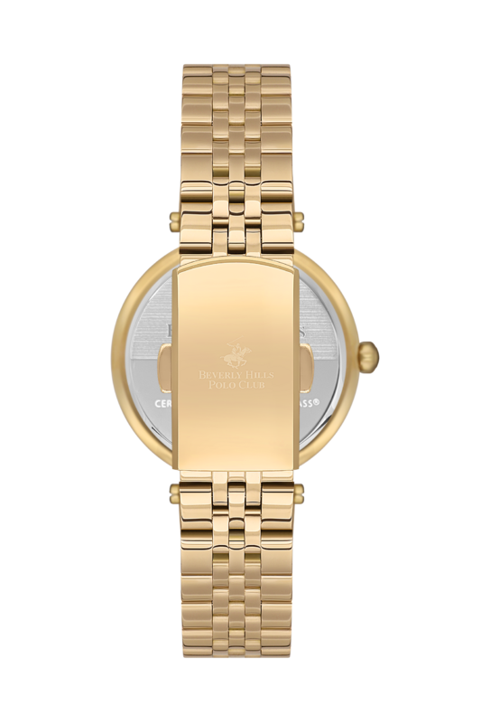 Женские наручные часы Beverly Hills Polo Club BP3583X.120 с надёжным автоматическим механизмом. Минеральное стеклоМинеральное стеклоМинеральное стекло представляет собой искусственно выращенный минерал кварца. Такое стекло отличается особой устойчивостью к повреждениям и царапинам. Уступает по некоторым качествам сапфировому стеклу. устойчивое к мелким механическим повреждениям. Корпус и браслет часов изготовлены из нержавеющей стали с IP-покрытиемIP-покрытиеМетод ионного напыления. Демонстрирует повышенную устойчивость к истиранию, окислению и химическим веществам. Под воздействием высокого давления и температуры около 1500°C молекулы металла надёжно соединяются с частицами корпуса часов.. Стальной браслет на раскладной застёжкеРаскладная застёжкаТакой тип застёжки используется только на браслетах из металла. Она никогда не раскрывается полностью, происходит разделение на 2 и более частей. Раскладывающая застёжка снизит вероятность потери часов к минимуму.. Окошко даты находится в положении 3 часа. Класс водозащиты: 50 метров, позволит защитить корпус от случайных брызг или капель дождя. Циферблат и безельБезельВнешний ободок, закрепляющий стекло. В спортивных часах так называется поворотное кольцо с делениями на циферблате, выполняет роль таймера – замеряет отрезки времени на шкале. Неподвижный безель – элемент декора. Однонаправленно вращающийся безель на дайверских часах позволяет фиксировать моменты погружения и выныривания на поверхность. инкрустированы кристаллами циркония.