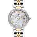 Часы Beverly Hills Polo Club BP3583X.220 — элегантная женская модель, сочетающая классический дизайн и современные технологии. Корпус диаметром 34 мм выполнен из нержавеющей стали с PVD-покрытиемPVDУльтратонкое покрытие наносится в технике вакуумного напыления, сочетает в себе нитрид титана особой прочности со слоем золота или оксида хрома. Несёт в себе декоративную или защитную функцию. золотого цвета. Перламутровый циферблат украшен римскими цифрами и кристаллами, придающими часам изысканный вид, и защищён минеральным стекломМинеральное стеклоМинеральное стекло представляет собой искусственно выращенный минерал кварца. Такое стекло отличается особой устойчивостью к повреждениям и царапинам. Уступает по некоторым качествам сапфировому стеклу., устойчивым к царапинам.