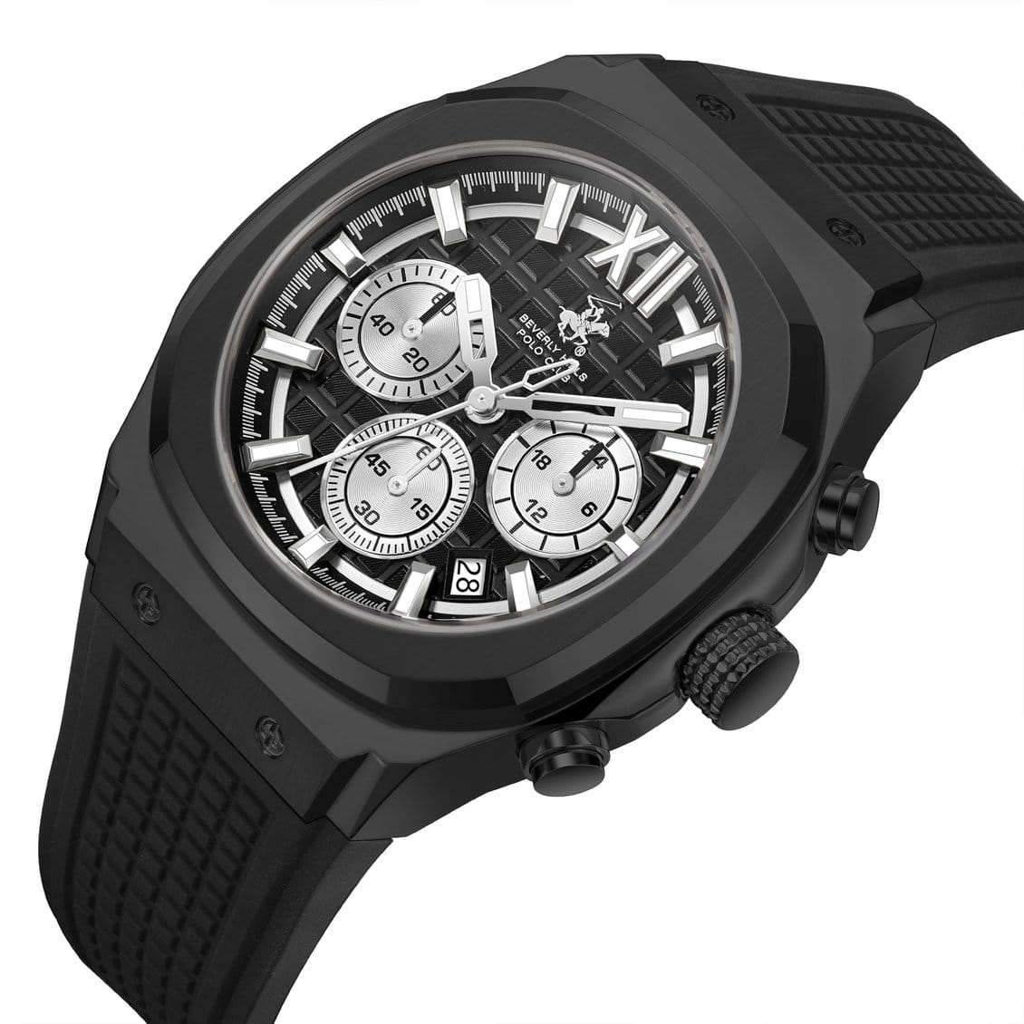 Американские мужские часы Beverly Hills Polo Club BP3785X.651 - это стильный мужской хронографХронографФункция позволяет измерять отрезки времени с особой точностью: часы, минуты, секунды. Верным признаком хронографа является наличие на циферблате 3 дополнительных окошек-счётчиков., который сочетает элегантный дизайн и практичность. Корпус выполнен из нержавеющей стали с IP-покрытиемIP-покрытиеМетод ионного напыления. Демонстрирует повышенную устойчивость к истиранию, окислению и химическим веществам. Под воздействием высокого давления и температуры около 1500°C молекулы металла надёжно соединяются с частицами корпуса часов. черного цвета, диаметром 45,5 мм. Надежное минеральное стеклоМинеральное стеклоМинеральное стекло представляет собой искусственно выращенный минерал кварца. Такое стекло отличается особой устойчивостью к повреждениям и царапинам. Уступает по некоторым качествам сапфировому стеклу. с сапфировым покрытием защищает циферблат от царапин и обеспечивает долговечность. Модель оснащена кварцевым механизмом, обеспечивающим высокую точность хода. Каучуковый ремешок на стандартной застежке обеспечивает комфортное ношение. Функциональность модели расширена за счёт индикации даты и дополнительным 24-х часовым индикатором. Стрелки и метки с люминесцентным покрытиемЛюминесцентное покрытиеПозволяет считывать показания времени в темноте. Производители наносят на стрелки, часовые индексы, безель или поверхность циферблата светонакопительный состав, дающий холодное свечение. позволяют легко считывать время даже в условиях недостаточного освещения. Водозащита 50 метров позволит защитить корпус от случайных брызг или капель дождя. Эта модель – отличный выбор для тех, кто ищет сочетание стиля, качества и функциональности. Часы станут не только полезным аксессуаром, но и выразительным элементом вашего имиджа.