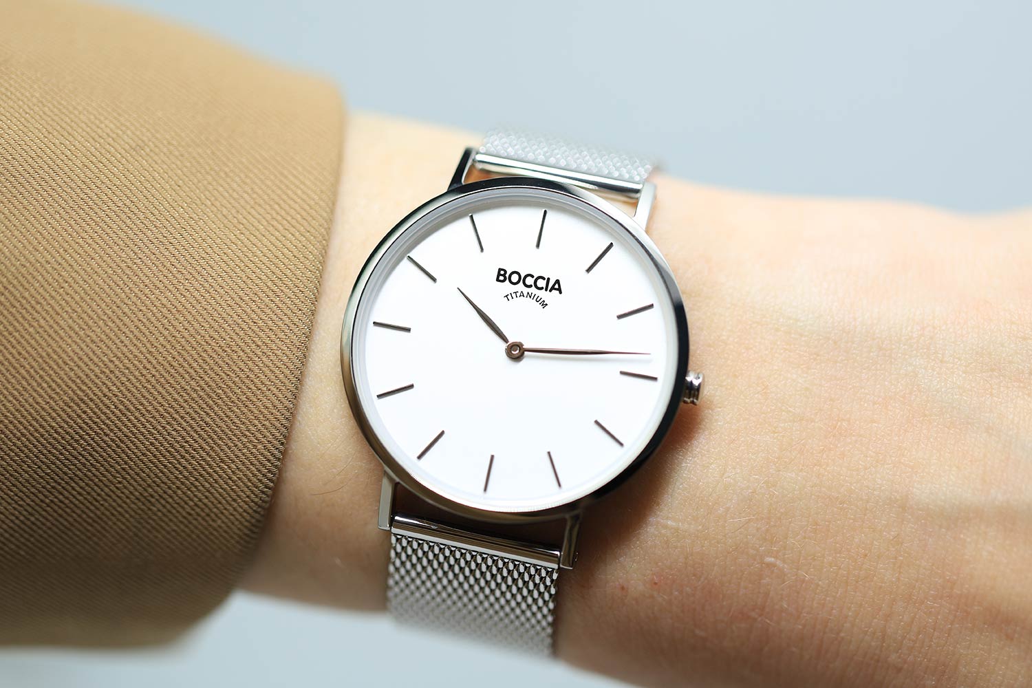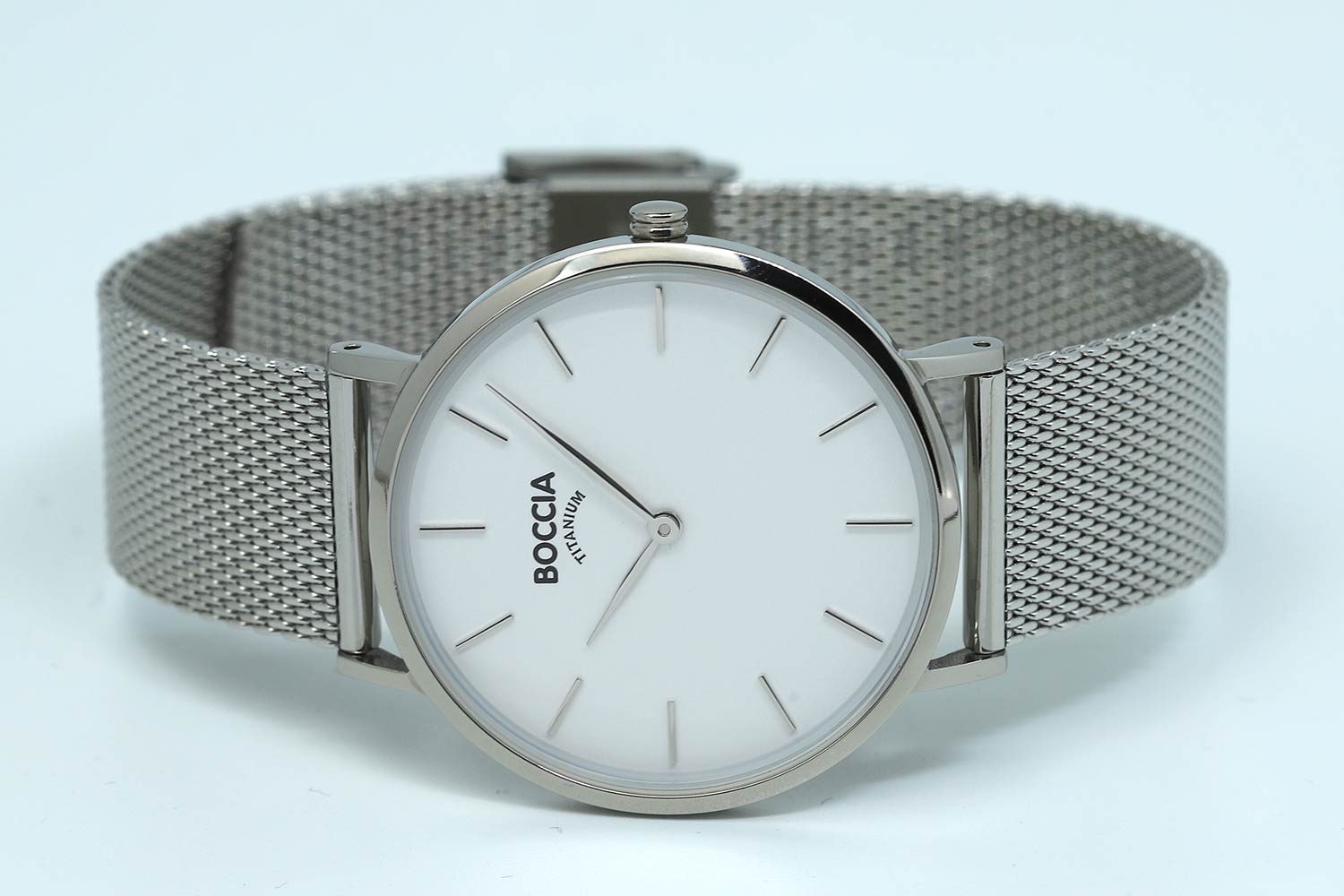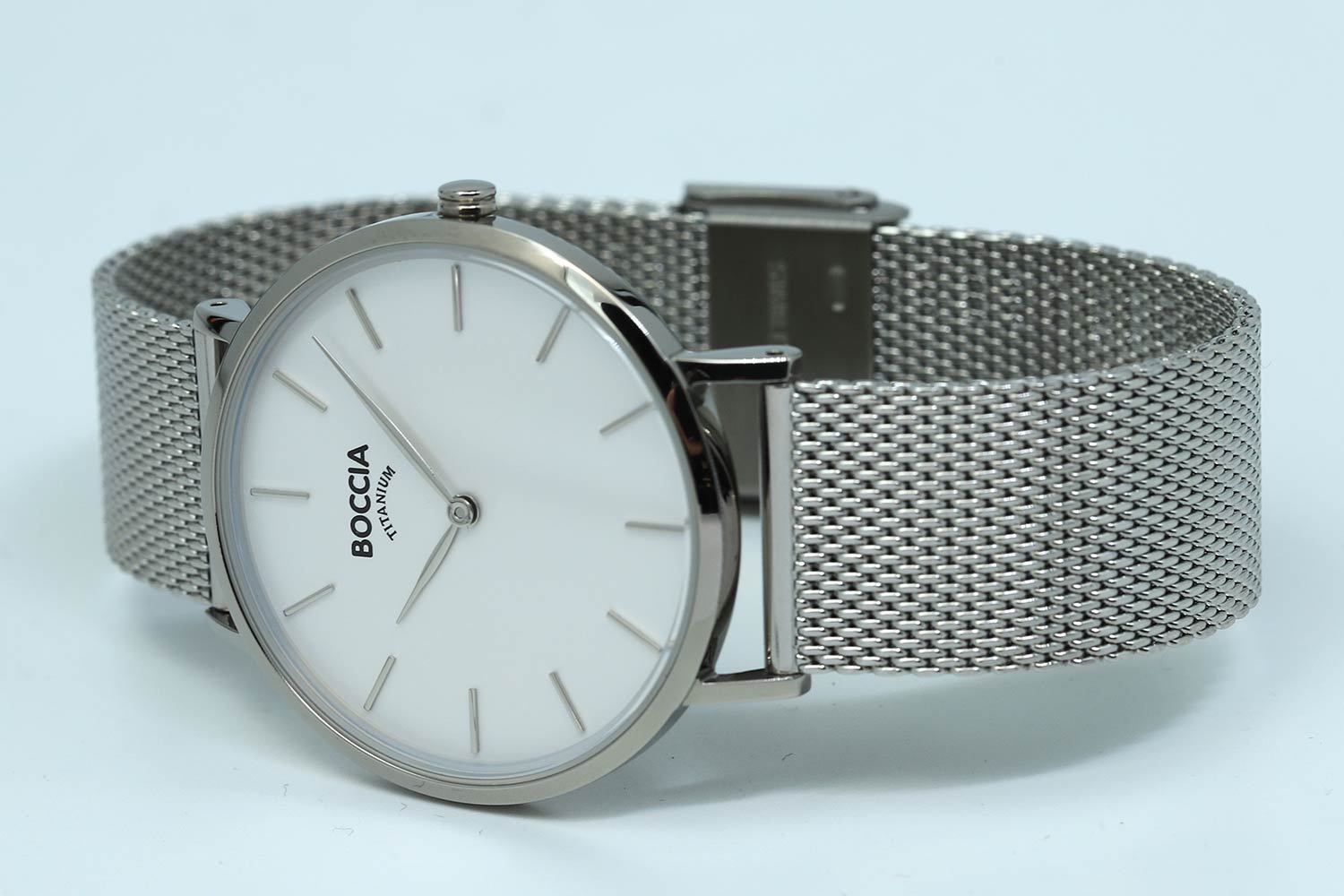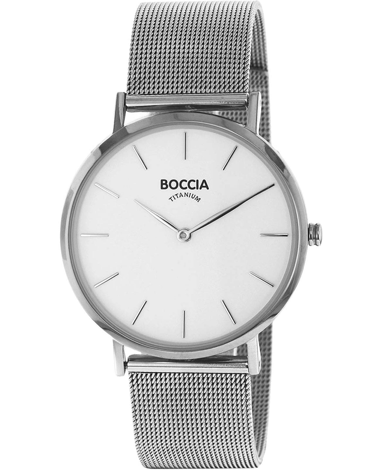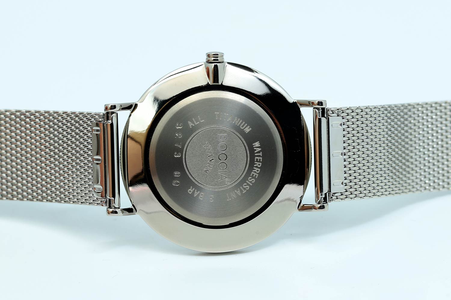 Мужские немецкие титановые часы Boccia Titanium 3273-09, кварцевый механизм с высокой точностью. Сапфировое стеклоСапфировое стеклоПрочный и надёжный материал из кристалла сапфира синтетического происхождения, характеризующийся особой твёрдостью и устойчивостью к царапинам и повреждениям. устойчивое к появлению царапин, обладающее высокой прозрачностью. Корпус изготовлен из титана. Класс водозащиты: 30 метров, позволит защитить корпус от случайных брызг или капель дождя. Титановый браслет миланского плетения на раскладном замкеРаскладной замокДанный вариант застежки используется только на часах с металлическим браслетом. Отличительная особенность такого крепления в том, что длина браслета становится универсальной и вы можете самостоятельно отрегулировать нужный вам размер – застежка просто двигается по браслету часов..