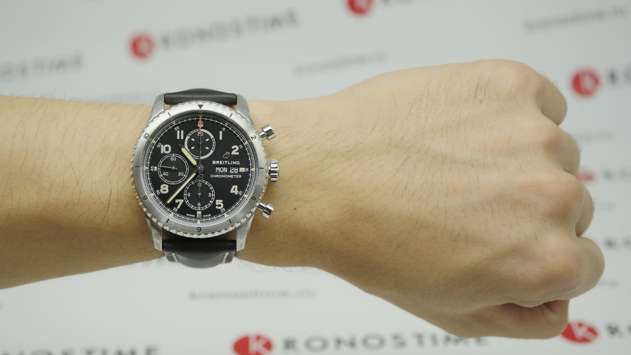 Модель Aviator 8 Chronograph 43 A13316101B1X1 оснащена 30-минутным и 12-часовым счетчиками, расположенными в положении «12» и «6 часов», а также малой секундной стрелкой в положении «9 часов». Уровень точности достигает 1/4 секунды. «Сердце» данной модели – калибр Breitling Caliber 13, подтвержденный сертификатом Швейцарского института официального тестирования хронометров (COSC). Он приводится в действие однонаправленным ротором с шарикоподшипниками и обладает запасом хода более 42 часов. Сплошная крышка корпуса диаметром 43 мм крепится на винтах.