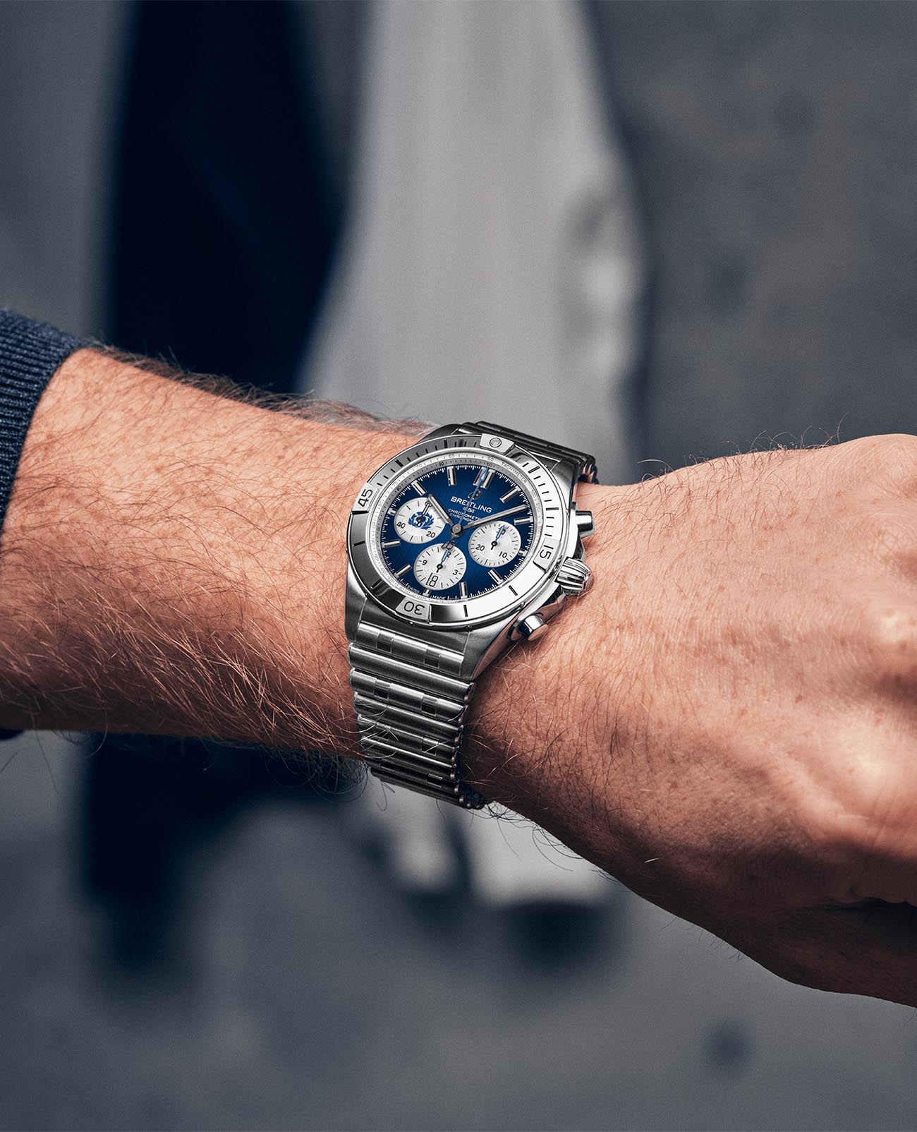 Лимитированные мужские швейцарские часы-хронографХронографФункция позволяет измерять отрезки времени с особой точностью: часы, минуты, секунды. Верным признаком хронографа является наличие на циферблате 3 дополнительных окошек-счётчиков. с секундомеромСекундомерСекундоме́р — прибор, способный измерять интервалы времени с точностью до долей секунды. Breitling Chronomat B01 42 AB0134A51C1A1, механический механизм (автоматический калибр) с высокой точностью. Основанный на хронографе Frecce Tricolori, который был разработан и выпущен в 1983 году в сотрудничестве со знаменитой итальянской авиационной эскадрильей, Chronomat стильно отпраздновал столетие Breitling и ознаменовал возвращение механическому хронографу его законного места в бренде, который построил свою мировую репутацию на этих невероятных часах. Сапфировое стеклоСапфировое стеклоПрочный и надёжный материал из кристалла сапфира синтетического происхождения, характеризующийся особой твёрдостью и устойчивостью к царапинам и повреждениям. устойчивое к появлению царапин, обладающее высокой прозрачностью. Класс водозащиты: 200 метров, позволит плавать, нырять и заниматься другими водными видами спорта. Корпус и браслет часов изготовлены из нержавеющей стали. Часы имеют сертификат COSCСертификат COSCОфициальный сертификат, подтверждающий то, что часы ходят с особо высокой точностью. Для получения документа часы подвергаются тестовым испытаниям, разработанным швейцарским институтом тестирования хронометров COSC. Допустимая норма для механических часов -4/+6 секунд в день, для кварцевых моделей +/- 0,07 секунд в день.. Стрелки и метки с люминесцентным покрытиемЛюминесцентное покрытиеПозволяет считывать показания времени в темноте. Производители наносят на стрелки, часовые индексы, безель или поверхность циферблата светонакопительный состав, дающий холодное свечение.. Шкала тахиметраТахиметрРазмеченная шкала, располагается на ободке или безеле часов. Тахиметр позволяет рассчитать скорость на определённом участке пути, расстояние измеряется в километрах или милях. на циферблате. Окошко даты находится в положении 6 часов. Браслет с застёжкой-бабочкой с кнопкамиЗастёжка "бабочка"Такой вид застёжки дополняется предохранителями, помогающими избежать случайного раскрытия браслета. Обладают изящным исполнением. .