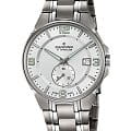 Корпус часов выполнен из титана, что придаёт им лёгкость и прочность. Секундная стрелка вынесена на отдельный циферблат, улучшая читаемость времени. Стрелки и метки с люминесцентным покрытиемЛюминесцентное покрытиеПозволяет считывать показания времени в темноте. Производители наносят на стрелки, часовые индексы, безель или поверхность циферблата светонакопительный состав, дающий холодное свечение. облегчают чтение времени даже в условиях слабого освещения. Окошко даты находится в положении трёх часов. Класс водозащиты 50 метров позволяет носить часы в условиях умеренного контакта с водой, защищая их от случайных брызг или капель дождя. Титановый браслет на раскладной застёжкеРаскладная застёжкаТакой тип застёжки используется только на браслетах из металла. Она никогда не раскрывается полностью, происходит разделение на 2 и более частей. Раскладывающая застёжка снизит вероятность потери часов к минимуму. обеспечивает комфортное и надёжное крепление на запястье.
