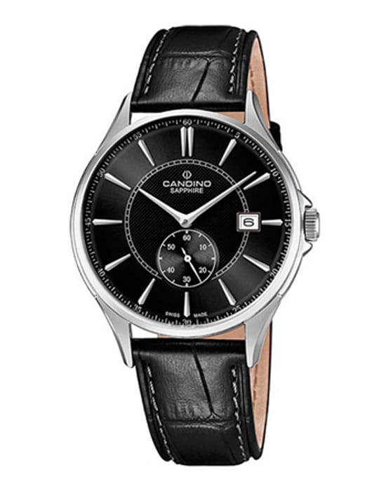 Швейцарские мужские наручные часы Candino Classic C4634/4, кварцевый механизм с высокой точностью. Сапфировое стеклоСапфировое стеклоПрочный и надёжный материал из кристалла сапфира синтетического происхождения, характеризующийся особой твёрдостью и устойчивостью к царапинам и повреждениям. устойчивое к появлению царапин, обладающее высокой прозрачностью. Класс водозащиты: 30 метров. Корпус выполнен из нержавеющей стали. Часы, минуты, секунды, дата. Секундная стрелка вынесена на отдельный циферблат. Кожаный ремешок.