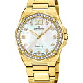 Женские кварцевые часы с автоподзаводом Candino Lady Elegance Date C4755/1. Сапфировое стеклоСапфировое стеклоПрочный и надёжный материал из кристалла сапфира синтетического происхождения, характеризующийся особой твёрдостью и устойчивостью к царапинам и повреждениям. повышенной прозрачности, устойчивое к мелким механическим повреждениям. Корпус изготовлен из нержавеющей стал с PVD-покрытиемPVDУльтратонкое покрытие наносится в технике вакуумного напыления, сочетает в себе нитрид титана особой прочности со слоем золота или оксида хрома. Несёт в себе декоративную или защитную функцию.. Стрелки с люминесцентным покрытиемЛюминесцентное покрытиеПозволяет считывать показания времени в темноте. Производители наносят на стрелки, часовые индексы, безель или поверхность циферблата светонакопительный состав, дающий холодное свечение.. Циферблат инкрустирован кристаллами. Класс водозащиты: 50 метров, позволит защитить корпус от случайных брызг или капель дождя. Окошко даты находится в положении 3 часа. Стальной браслет с PVD-покрытиемPVDУльтратонкое покрытие наносится в технике вакуумного напыления, сочетает в себе нитрид титана особой прочности со слоем золота или оксида хрома. Несёт в себе декоративную или защитную функцию. на раскладной застёжкеРаскладная застёжкаТакой тип застёжки используется только на браслетах из металла. Она никогда не раскрывается полностью, происходит разделение на 2 и более частей. Раскладывающая застёжка снизит вероятность потери часов к минимуму..