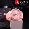 Спортивный аксессуар в персиковом цвете поможет держать себя в форме благодаря таймеру, секундомеру, шагомеру. Счётчик измеряет пройденное количество шагов в диапазоне от 0 до 999999. Вокруг безеляБезельВнешний ободок, закрепляющий стекло. В спортивных часах так называется поворотное кольцо с делениями на циферблате, выполняет роль таймера – замеряет отрезки времени на шкале. Неподвижный безель – элемент декора. Однонаправленно вращающийся безель на дайверских часах позволяет фиксировать моменты погружения и выныривания на поверхность. нанесена шкала в процентах. Она помогает отслеживать план на день, отметка «Goal» обозначает выполнение намеченной цели. Часы выдерживают нагрузки и падение за счёт полимерного противоударного корпусаУдаропрочный корпусМеханизм заключён в корпус, выполненный из современных материалов, устойчивых к ударам, механическим повреждениям и падению с высоты: инновационный пластик, карбон, нержавеющая сталь, титан.. Японский кварцевый механизм. Срок службы батарейки составляет 2 года. Светодиодная подсветкаСветодиодная подсветкаСветодиодная или LED-подсветка обеспечивает появление яркого холодного свечения за счёт LED-элементов - маленьких лампочек. Они потребляют минимальное количество энергии, чаще всего можно встретить 1 светодиод, в нижней части циферблата. ЖК-дисплея и циферблата. Стрелки с люминесцентным покрытиемЛюминесцентное покрытиеПозволяет считывать показания времени в темноте. Производители наносят на стрелки, часовые индексы, безель или поверхность циферблата светонакопительный состав, дающий холодное свечение.. Водозащита 10 бар. Календарь, будильник, второй часовой пояс. Габариты: 42,6 x 45,2 x 13,3 мм.