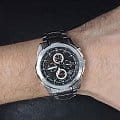 Мужские классические наручные часы Casio Edifice надежные и практичные. Кварцевый японский механизм Miyota. Точность хода не хуже -10 +15 сек./в месяц. Часы оснащены календарем и 24х часовым форматом времени. Циферблат черного цвета с контрастными индексами. Стрелки и индексы с светонакопительным нанесением. Корпус и браслет выполнены из высококачественной стали с антикоррозийными свойствами. Минеральное стекло устойчиво к появлению царапин Водонепроницаемость 100М. В часах можно плавать. Степень водонепроницаемости не является величиной, эквивалентной функциональной рабочей глубине.