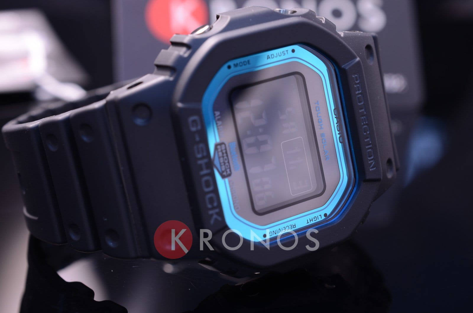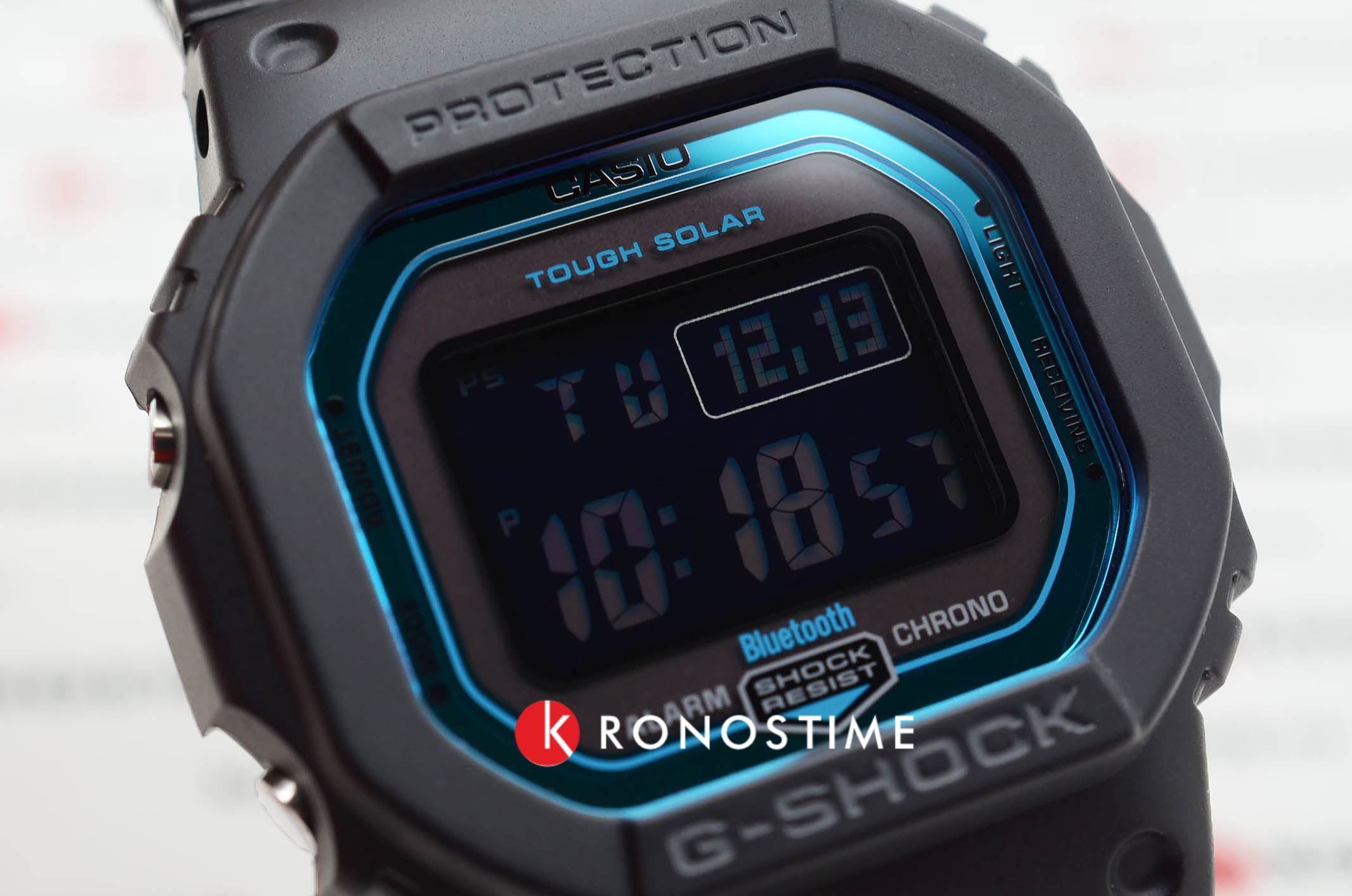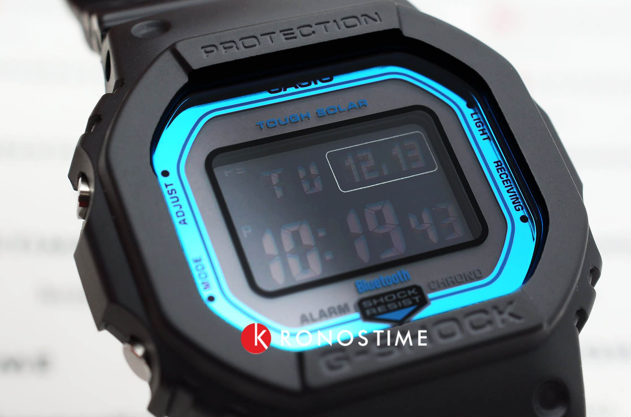 Модель с синими элементами оформления имеет классический для часов Casio 8-угольный противоударный корпусУдаропрочный корпусМеханизм заключён в корпус, выполненный из современных материалов, устойчивых к ударам, механическим повреждениям и падению с высоты: инновационный пластик, карбон, нержавеющая сталь, титан., благодаря которому дизайн приобретает узнаваемые черты. Аксессуар выполнен из полимерного материала, устойчивого к ударам, повреждениям, вибрации, падению. Синхронизация времени и настройка функций осуществляется с помощью технологии BluetoothBluetoothСовременная технология, позволяющая синхронизировать часы с телефоном и переносить данные. Часы с Bluetooth расширяют возможности вашего смартфона и делают его использование ещё более удобным., управление возможностями происходит в приложении на телефоне G-Shock Connected. Японский кварцевый калибр. Питание от солнечного света . Автоматический переход в режим сохранения энергии для экономии расхода батареи. Минеральное стекло. Электролюминесцентная подсветкаЭлектролюминесцентная подсветкаЭлектролюминесцентная панель устанавливается под ЖК-экраном часов, при нажатии кнопки электричество преобразуется в свет за счёт подачи напряжения на атомы фосфора, такой тип подсветки позволяет освещать весь циферблат.. Водонепроницаемость до 200 метров. Секундомер, коррекция текущего времени радиосигналом, таймер, хронографХронографФункция позволяет измерять отрезки времени с особой точностью: часы, минуты, секунды. Верным признаком хронографа является наличие на циферблате 3 дополнительных окошек-счётчиков., будильник, мировое времяМировое время Полезное часовое усложнение, отображающее время в основных городах и известных областях по всему миру, оно связано с часовыми поясами, удобно для путешественников и бизнесменов. , календарь. Габариты: 48,9 x 42,8 x 13,4 мм.