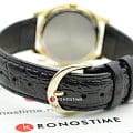 Аксессуар классического характера и со стильным дизайном придется по вкусу ценителям качества и комфорта. В шикарном сочетании черного и золотых цветов, часы прибавят привлекательности обладателю аксессуара. Аккуратный корпус выполнен из латуни. Черный ремень из натуральной кожи сочетает в себе комфорт и долговечность. На циферблате традиционной формы расположены стильные временные отметки в виде штрихов. Минеральное стекло надежно защищает часы от царапин. Кварцевый механизм.
