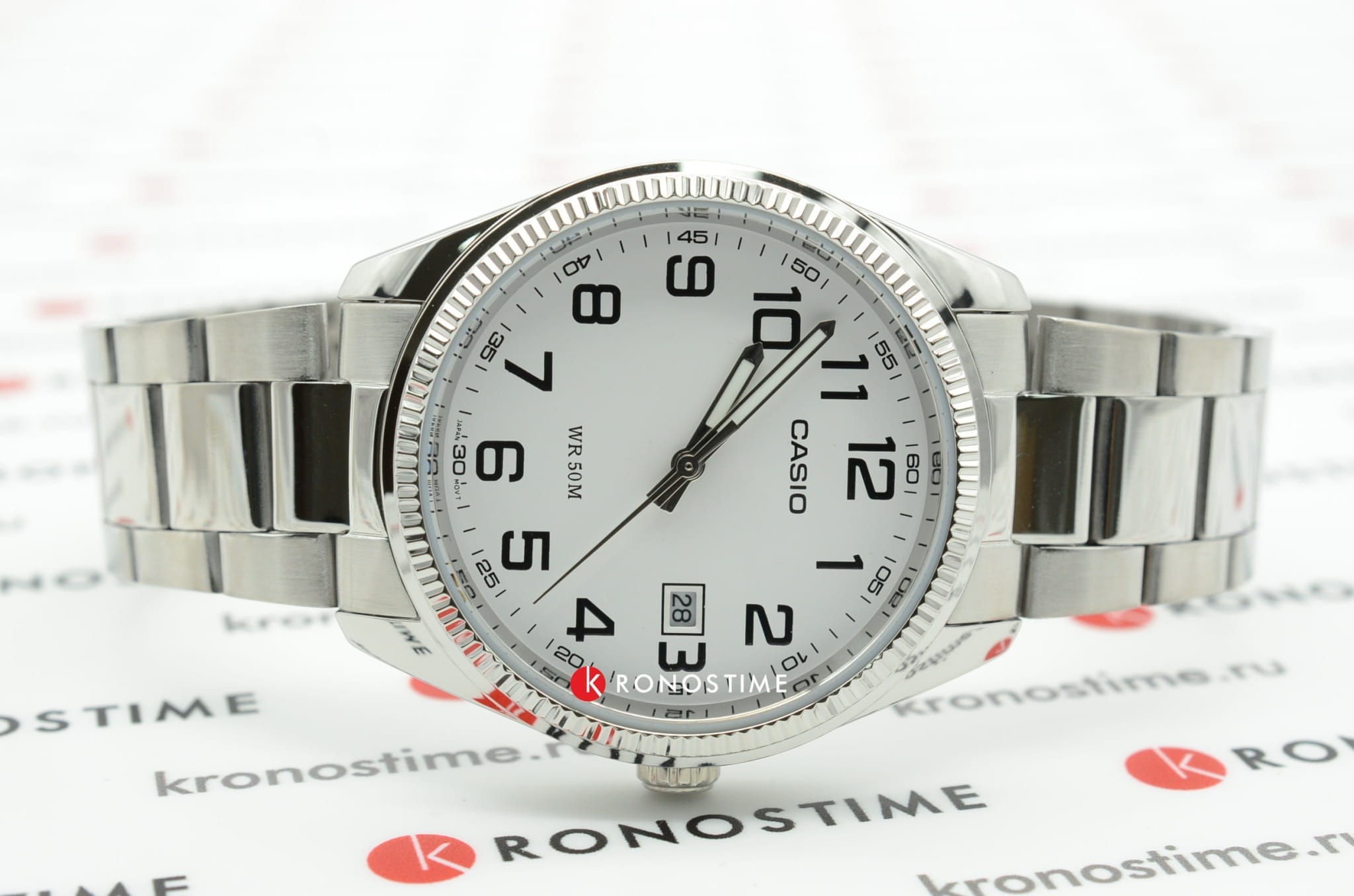 Скромный, и в то же время изящный дизайн выдержан в повседневном стиле. Серебристая поверхность наручных часов плавно отображает падающий свет. Прочный корпус выполнен из гипоаллергенной латуни. Браслет из нержавеющей стали будет надежно закрепляться на запястье с помощью раскладывающейся застежки. На циферблате традиционной формы расположены отчетливые арабские цифры. Есть миниатюрный календарь, показывающий текущую дату. Подсветка NeobriteПодсветка NeobriteИспользование светонакопительных составов на основе сульфида цинка или алюмината стронция, яркий свет можно наблюдать на протяжении 6-10 часов после «зарядки» часов около источника света. позволяет комфортно определять время в темное время суток. Минеральное стекло. Кварцевый тип механизма. Срок службы батарейки составляет 3 года. Водонепроницаемость равна 50 WR.