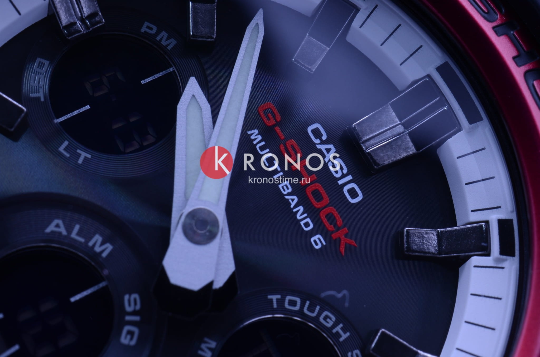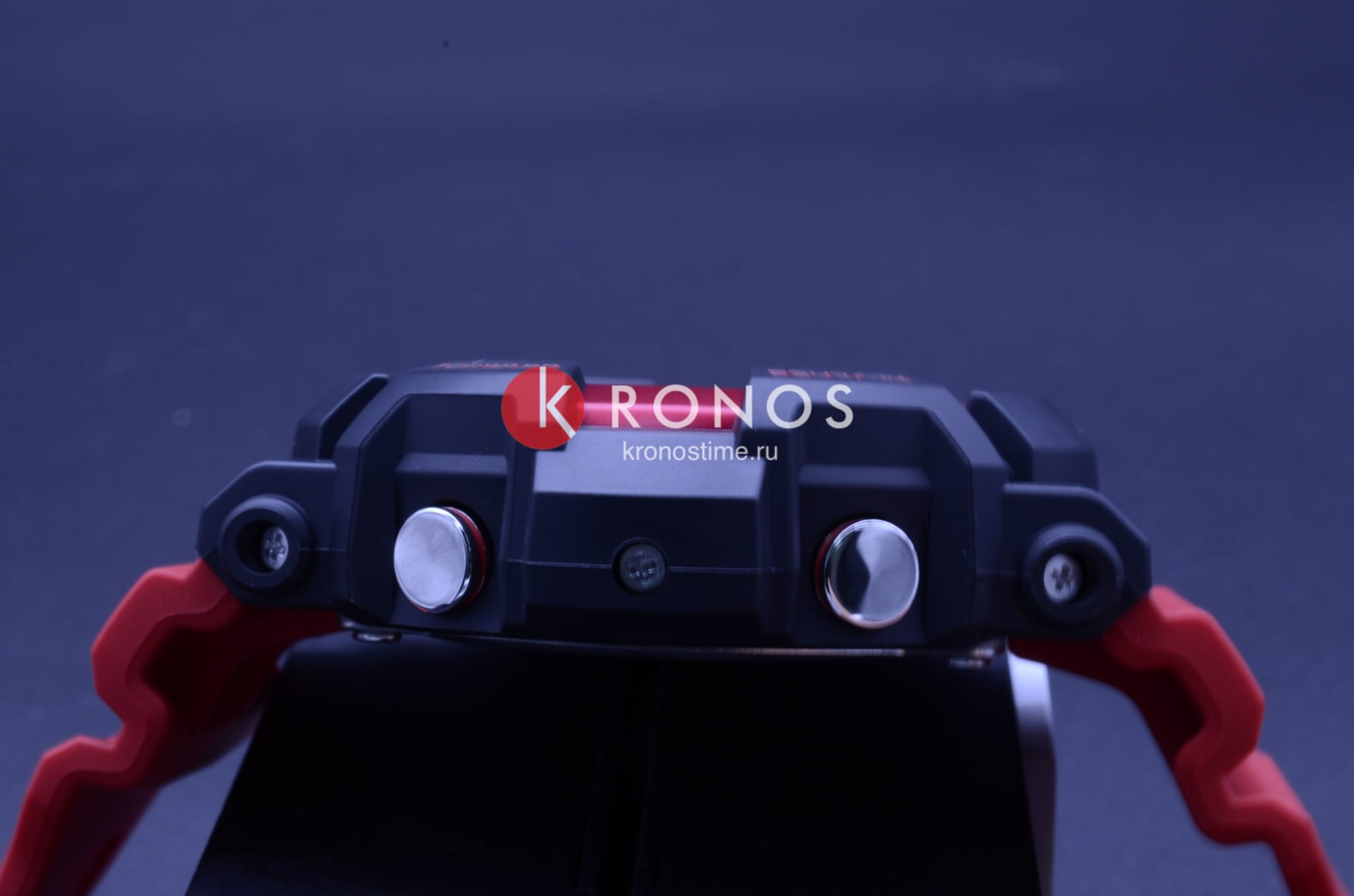 Брендовая модель в яркой чёрно-красной гамме на вашем запястье привлечёт всё внимание окружающих. Мы видим продуманное исполнение каждой детали, стильный дизайн, динамичный характер. Часы со стальным безелемБезельВнешний ободок, закрепляющий стекло. В спортивных часах так называется поворотное кольцо с делениями на циферблате, выполняет роль таймера – замеряет отрезки времени на шкале. Неподвижный безель – элемент декора. Однонаправленно вращающийся безель на дайверских часах позволяет фиксировать моменты погружения и выныривания на поверхность. обладают противоударным корпусомУдаропрочный корпусМеханизм заключён в корпус, выполненный из современных материалов, устойчивых к ударам, механическим повреждениям и падению с высоты: инновационный пластик, карбон, нержавеющая сталь, титан. из прочного пластика, материал поглощает силу удара и устойчив к вибрации. Кварцевый японский механизм получает питание от солнечного света - технология . Индикатор уровня заряда батареи. Частичное IP-покрытиеIP-покрытиеМетод ионного напыления. Демонстрирует повышенную устойчивость к истиранию, окислению и химическим веществам. Под воздействием высокого давления и температуры около 1500°C молекулы металла надёжно соединяются с частицами корпуса часов.. Минеральное стекло. Возможность перемещения стрелок для считывания информации с отдельных цифровых дисплеев. Автоматическая светодиодная подсветкаСветодиодная подсветкаСветодиодная или LED-подсветка обеспечивает появление яркого холодного свечения за счёт LED-элементов - маленьких лампочек. Они потребляют минимальное количество энергии, чаще всего можно встретить 1 светодиод, в нижней части циферблата., стрелки с покрытием NeobriteПодсветка NeobriteИспользование светонакопительных составов на основе сульфида цинка или алюмината стронция, яркий свет можно наблюдать на протяжении 6-10 часов после «зарядки» часов около источника света.. Надёжный полимерный ремешок. Таймер, хронографХронографФункция позволяет измерять отрезки времени с особой точностью: часы, минуты, секунды. Верным признаком хронографа является наличие на циферблате 3 дополнительных окошек-счётчиков., 5 будильников, мировое времяМировое время Полезное часовое усложнение, отображающее время в основных городах и известных областях по всему миру, оно связано с часовыми поясами, удобно для путешественников и бизнесменов. , корректировка времени по радиосигналу, секундомер. Габариты: 55,1 x 52,5 x 16,7 мм.