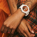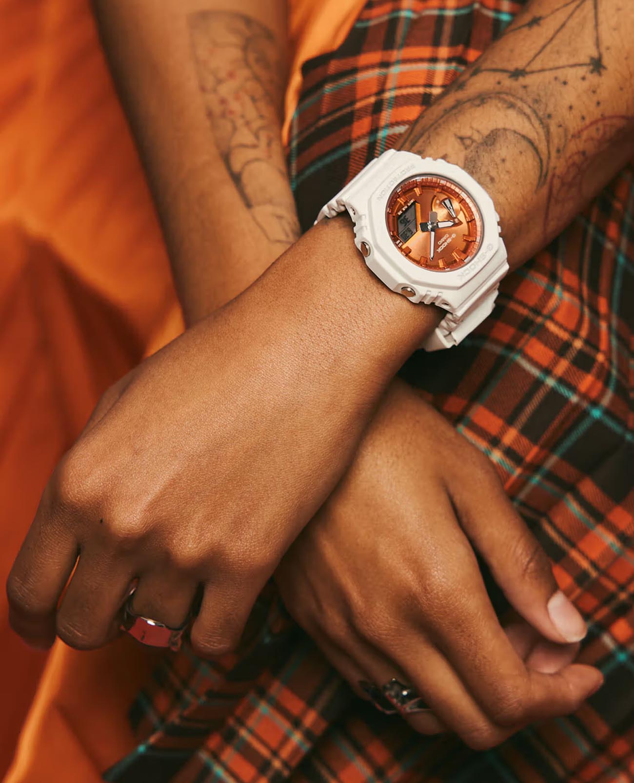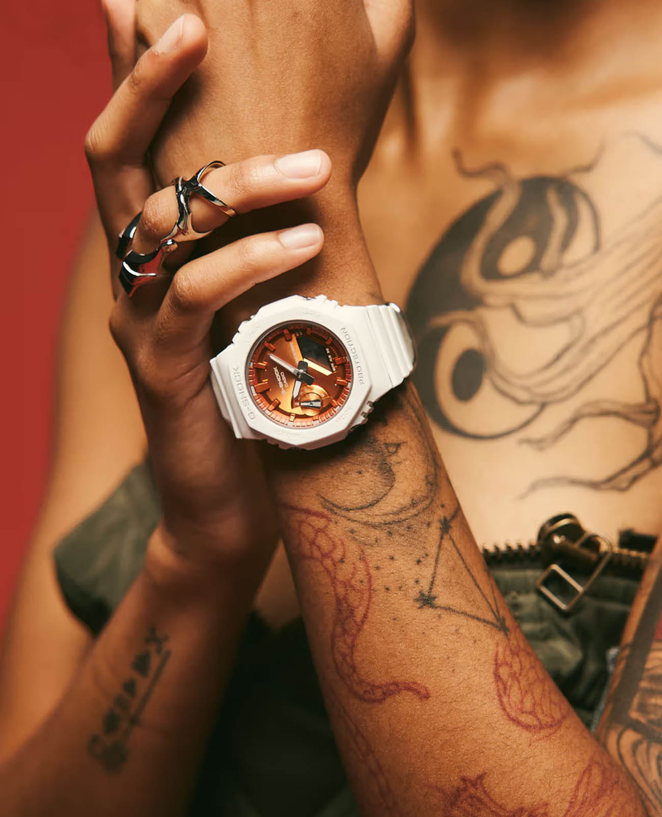 Японские женские часы-хронографХронографФункция позволяет измерять отрезки времени с особой точностью: часы, минуты, секунды. Верным признаком хронографа является наличие на циферблате 3 дополнительных окошек-счётчиков. Casio G-Shock GMA-S2100WS-7A. Часы из сезонной коллекции, доступных в различных дизайнах, идеально подходящих для повседневных нарядов. Минеральное стеклоМинеральное стеклоМинеральное стекло представляет собой искусственно выращенный минерал кварца. Такое стекло отличается особой устойчивостью к повреждениям и царапинам. Уступает по некоторым качествам сапфировому стеклу. устойчивое к появлению царапин, обладающее высокой прозрачностью. Ударопрочный корпусУдаропрочный корпусМеханизм заключён в корпус, выполненный из современных материалов, устойчивых к ударам, механическим повреждениям и падению с высоты: инновационный пластик, карбон, нержавеющая сталь, титан. Carbon Core GuardCarbon Core Guard Новейшая структура корпуса, разработанная Casio. Полиуретановая пластина дополнительно усилена карбоновыми вставками, что придаёт специальную защиту от механических повреждений. Карбон отличается лёгкостью и прочностью. защищает механизм от ударов и вибрации. Светодиодная подсветкаСветодиодная подсветкаСветодиодная или LED-подсветка обеспечивает появление яркого холодного свечения за счёт LED-элементов - маленьких лампочек. Они потребляют минимальное количество энергии, чаще всего можно встретить 1 светодиод, в нижней части циферблата. освещает весь циферблат, после отпускания кнопки свечение продолжается еще некоторое время. Настраиваемое послесвечение 1,5 или 3сек. Мировое время Мировое время Полезное часовое усложнение, отображающее время в основных городах и известных областях по всему миру, оно связано с часовыми поясами, удобно для путешественников и бизнесменов. 48 городов (31 часовых поясов), всемирное координированное время UTCUTCВсемирное кординационное время, не имеющее привязки к географическому положению Гринвича, основывается на атомном отсчёте времени. Регулировка времени осуществляется более точно, чем устаревшее GMT.