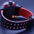 Внушительный аксессуар стильно смотрится на широком запястье, гармонично смотрятся крупные детали в красном и бронзовом цвете. Задняя крышка здесь отсутствует, ударопрочный корпусУдаропрочный корпусМеханизм заключён в корпус, выполненный из современных материалов, устойчивых к ударам, механическим повреждениям и падению с высоты: инновационный пластик, карбон, нержавеющая сталь, титан. сделан из монолитного углеродного монокока, вдохновлённого конструкцией ранних самолётов. Он состоит из 52 карбоновых слоёв, уникальная текстура просматривается на боковых частях безеляБезельВнешний ободок, закрепляющий стекло. В спортивных часах так называется поворотное кольцо с делениями на циферблате, выполняет роль таймера – замеряет отрезки времени на шкале. Неподвижный безель – элемент декора. Однонаправленно вращающийся безель на дайверских часах позволяет фиксировать моменты погружения и выныривания на поверхность. – с успехом реализована технология Carbon Core GuardCarbon Core Guard Новейшая структура корпуса, разработанная Casio. Полиуретановая пластина дополнительно усилена карбоновыми вставками, что придаёт специальную защиту от механических повреждений. Карбон отличается лёгкостью и прочностью.. Полимерный ремешок тоже имеет усиление карбоновыми волокнами. Наручные часы обладают полезным функционалом: BluetoothBluetoothСовременная технология, позволяющая синхронизировать часы с телефоном и переносить данные. Часы с Bluetooth расширяют возможности вашего смартфона и делают его использование ещё более удобным., будильник, мировое времяМировое время Полезное часовое усложнение, отображающее время в основных городах и известных областях по всему миру, оно связано с часовыми поясами, удобно для путешественников и бизнесменов. , таймер, приём радиосигнала, питание от солнечной батареи . Сапфировое стекло с антибликовой обработкой. Яркая люминесцентная подсветкаЛюминесцентное покрытиеПозволяет считывать показания времени в темноте. Производители наносят на стрелки, часовые индексы, безель или поверхность циферблата светонакопительный состав, дающий холодное свечение.. Габариты: 50,1 x 46,4 x 16,9 мм.
