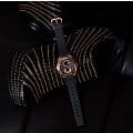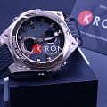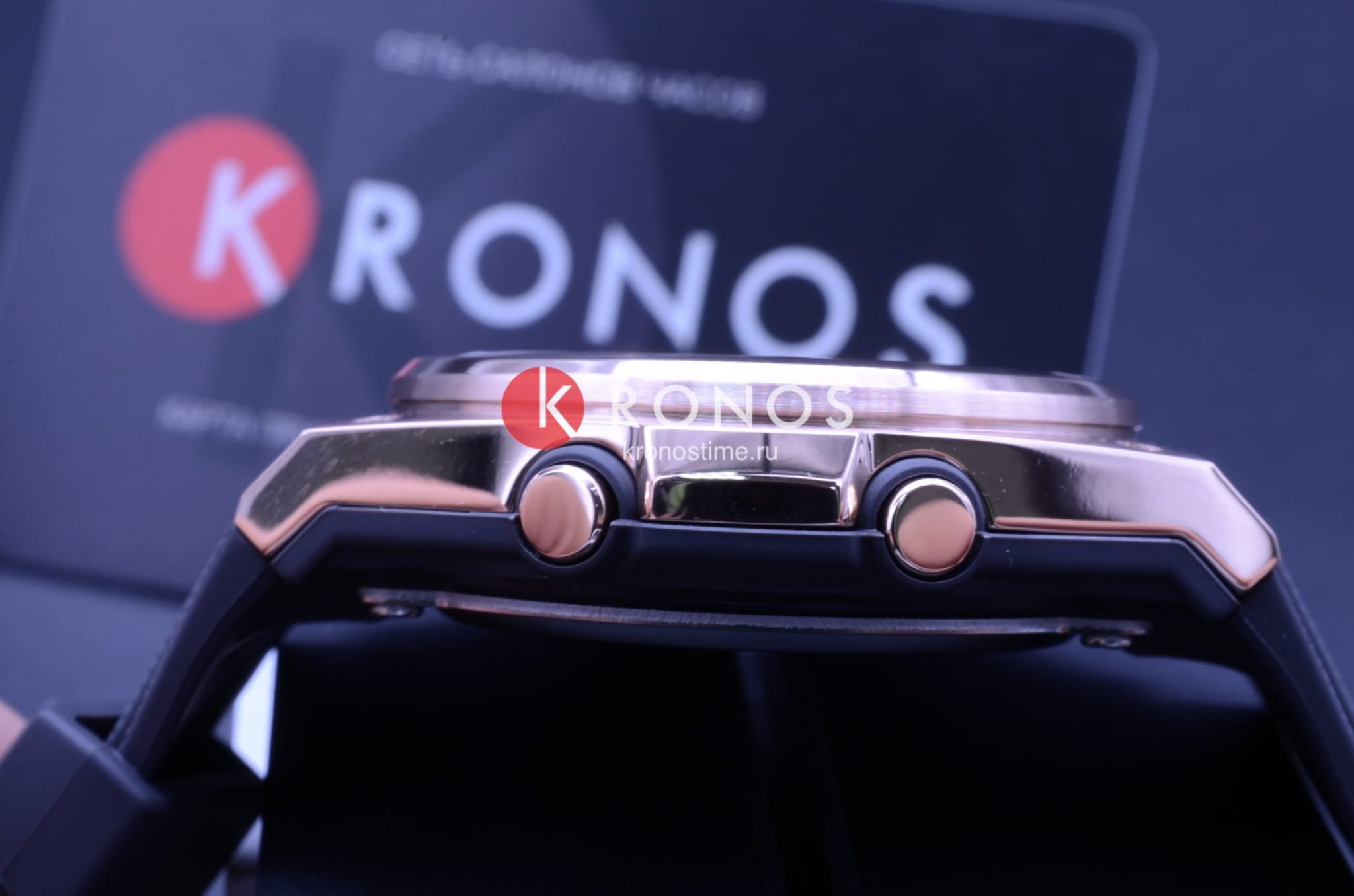Аксессуар с фактурным циферблатом наделён противоударным корпусомУдаропрочный корпусМеханизм заключён в корпус, выполненный из современных материалов, устойчивых к ударам, механическим повреждениям и падению с высоты: инновационный пластик, карбон, нержавеющая сталь, титан. из полимерного пластика. Для усиления устойчивости к ударам безельБезельВнешний ободок, закрепляющий стекло. В спортивных часах так называется поворотное кольцо с делениями на циферблате, выполняет роль таймера – замеряет отрезки времени на шкале. Неподвижный безель – элемент декора. Однонаправленно вращающийся безель на дайверских часах позволяет фиксировать моменты погружения и выныривания на поверхность. сделан из хирургической стали 316L. IP-покрытиеIP-покрытиеМетод ионного напыления. Демонстрирует повышенную устойчивость к истиранию, окислению и химическим веществам. Под воздействием высокого давления и температуры около 1500°C молекулы металла надёжно соединяются с частицами корпуса часов. цвета розового золота защищает от царапин. Японский кварцевый механизм. Чёрный полимерный ремешок с узорчатой поверхностью. Минеральное стекло с закалкой. Водозащита до 10 бар. ЛюминесцентнаяЛюминесцентное покрытиеПозволяет считывать показания времени в темноте. Производители наносят на стрелки, часовые индексы, безель или поверхность циферблата светонакопительный состав, дающий холодное свечение. и светодиодная подсветкаСветодиодная подсветкаСветодиодная или LED-подсветка обеспечивает появление яркого холодного свечения за счёт LED-элементов - маленьких лампочек. Они потребляют минимальное количество энергии, чаще всего можно встретить 1 светодиод, в нижней части циферблата.. Будильник, таймер, секундомер с точностью в 1/100 секунды, хронографХронографФункция позволяет измерять отрезки времени с особой точностью: часы, минуты, секунды. Верным признаком хронографа является наличие на циферблате 3 дополнительных окошек-счётчиков., ежечасный сигнал, мировое времяМировое время Полезное часовое усложнение, отображающее время в основных городах и известных областях по всему миру, оно связано с часовыми поясами, удобно для путешественников и бизнесменов. . Габариты: 45,1 x 40,3 x 12,4 мм.