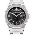 Cerruti 1881 CIWGH0084701 — утончённые мужские часы, в которых классика и современная геометрия нашли безупречный баланс. Стальной корпус с восьмигранным безелемБезельВнешний ободок, закрепляющий стекло. В спортивных часах так называется поворотное кольцо с делениями на циферблате, выполняет роль таймера – замеряет отрезки времени на шкале. Неподвижный безель – элемент декора. Однонаправленно вращающийся безель на дайверских часах позволяет фиксировать моменты погружения и выныривания на поверхность. подчёркивает архитектурную точность форм, а глубокий циферблат с гильошированным узором придаёт модели выразительную глубину. Индикаторы дня недели и даты оформлены в элегантных окнах на «12» и «3 часах», обеспечивая визуальную симметрию и удобство считывания. Прочные стрелки покрыты люминесцентным покрытиемЛюминесцентное покрытиеПозволяет считывать показания времени в темноте. Производители наносят на стрелки, часовые индексы, безель или поверхность циферблата светонакопительный состав, дающий холодное свечение., что гарантирует отличную читаемость даже в темноте. Циферблат защищён надёжным минеральным стекломМинеральное стеклоМинеральное стекло представляет собой искусственно выращенный минерал кварца. Такое стекло отличается особой устойчивостью к повреждениям и царапинам. Уступает по некоторым качествам сапфировому стеклу., устойчивым к царапинам, а стальной браслет фиксируется удобной застёжкой «бабочка»Застёжка "бабочка"Такой вид застёжки дополняется предохранителями, помогающими избежать случайного раскрытия браслета. Обладают изящным исполнением. , обеспечивающей комфорт и безопасность при носке. Строгая форма и продуманные детали делают эту модель идеальным выбором для мужчины, ценящего сдержанную роскошь и точность швейцарского стиля.