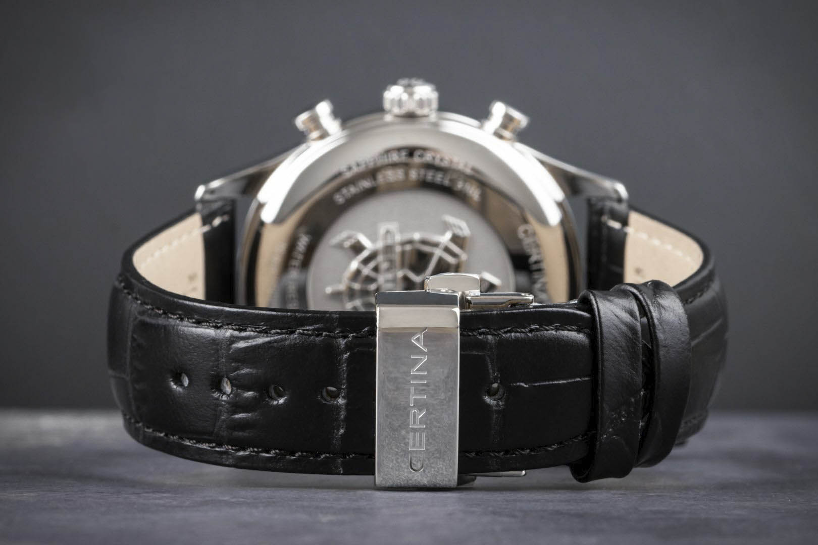 Модель, благодаря классической цветовой гамме и отсутствию броских деталей, станет универсальным аксессуаром к вашему образу. Брендовый хронографХронографФункция позволяет измерять отрезки времени с особой точностью: часы, минуты, секунды. Верным признаком хронографа является наличие на циферблате 3 дополнительных окошек-счётчиков. измеряет время с высокой точностью, что обеспечивает швейцарский кварцевый калибр ETA G10.962 Precidrive™Precidrive™Инновационный кварцевый механизм Certina. Часы, оснащённые этим швейцарским калибром, приравниваются к точности к сертифицированным хронометрам, точность хода составляет +/-10 секунд в год.. Ремешок из натуральной кожи. Сапфировое стекло с двухсторонним антибликовым покрытием. Корпус из нержавеющей стали 316L. Водостойкость 10 бар. Люминесцентная подсветкаЛюминесцентное покрытиеПозволяет считывать показания времени в темноте. Производители наносят на стрелки, часовые индексы, безель или поверхность циферблата светонакопительный состав, дающий холодное свечение.. Задняя крышка с гравировкой. Секундомер, дата, индикатор EOLEOLПредставляет собой систему, уведомляющую владельца часов о необходимости замены элемента питания. За 2 недели до полного разряда батарейки секундная стрелка перестаёт ходить чётко и начинает перепрыгивать на 3-4 деления., отображение лунных фаз. Диаметр корпуса: 41 мм.
