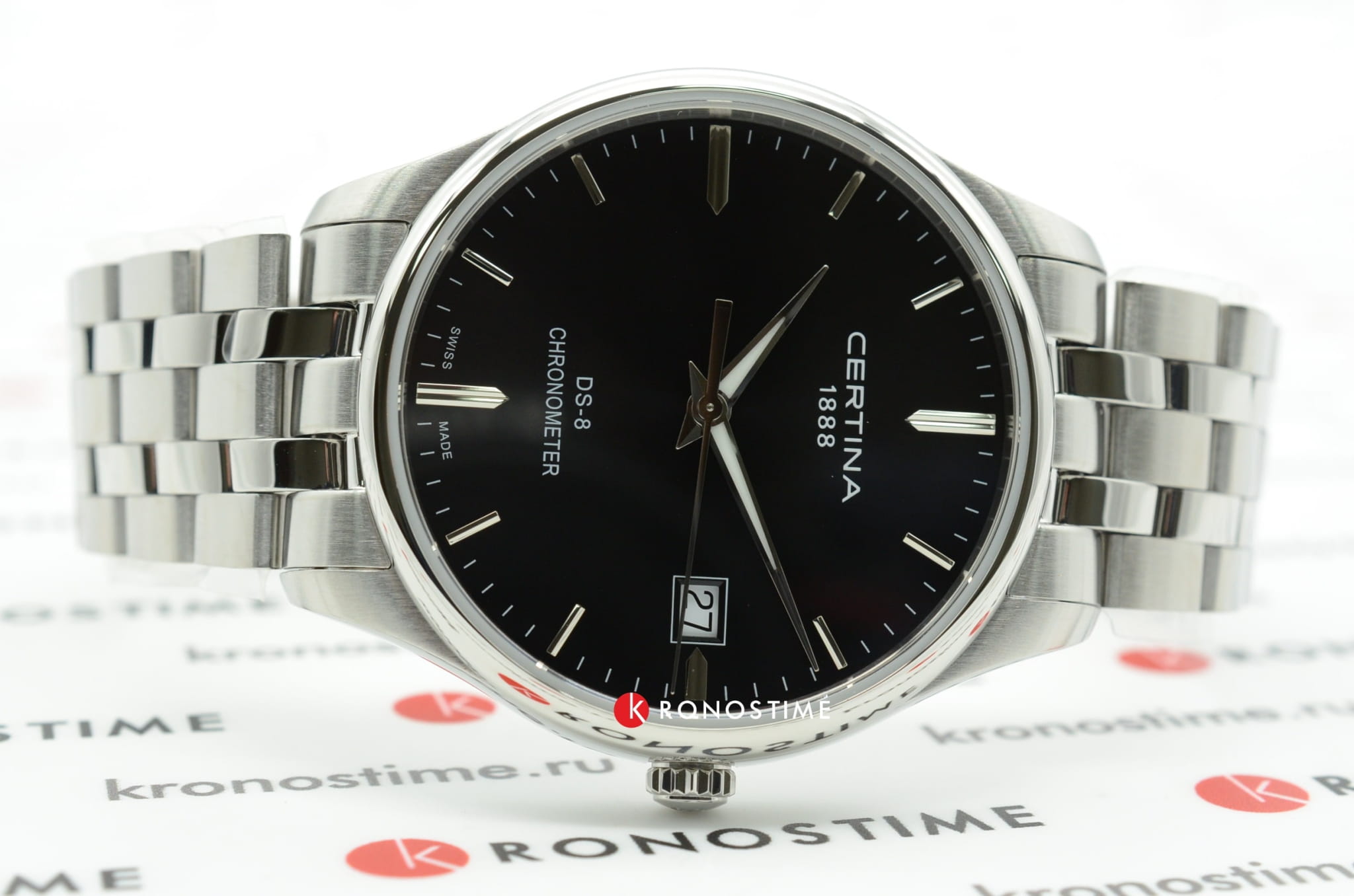 Стильный аксессуар в минималистичном оформлении охарактеризует вас как человека, который действительно разбирается в часах. Модель отличается повышенной точностью хода, это подтверждено официальным сертификатом хронометра COSCСертификат COSCОфициальный сертификат, подтверждающий то, что часы ходят с особо высокой точностью. Для получения документа часы подвергаются тестовым испытаниям, разработанным швейцарским институтом тестирования хронометров COSC. Допустимая норма для механических часов -4/+6 секунд в день, для кварцевых моделей +/- 0,07 секунд в день.. Часы обладают ударопрочным корпусомУдаропрочный корпусМеханизм заключён в корпус, выполненный из современных материалов, устойчивых к ударам, механическим повреждениям и падению с высоты: инновационный пластик, карбон, нержавеющая сталь, титан. и водонепроницаемостью до 10 бар - такие безупречные характеристики появились благодаря фирменной концепции DS ConceptDS ConceptDouble Security Concept, обозначает двойную надёжность и безупречную точность часов Certina. Двойная система защиты подразумевает обеспечение максимальной устойчивости к ударам и высоких показателей водонепроницаемости.. Швейцарский кварцевый механизм ETA F07.412 Precidrive™Precidrive™Инновационный кварцевый механизм Certina. Часы, оснащённые этим швейцарским калибром, приравниваются к точности к сертифицированным хронометрам, точность хода составляет +/-10 секунд в год.. Стекло из сапфира с антибликовым покрытием. Корпус и браслет из нержавеющей стали 316L. Индикация числа, функция EOLEOLПредставляет собой систему, уведомляющую владельца часов о необходимости замены элемента питания. За 2 недели до полного разряда батарейки секундная стрелка перестаёт ходить чётко и начинает перепрыгивать на 3-4 деления.. Диаметр корпуса: 40,2 мм.