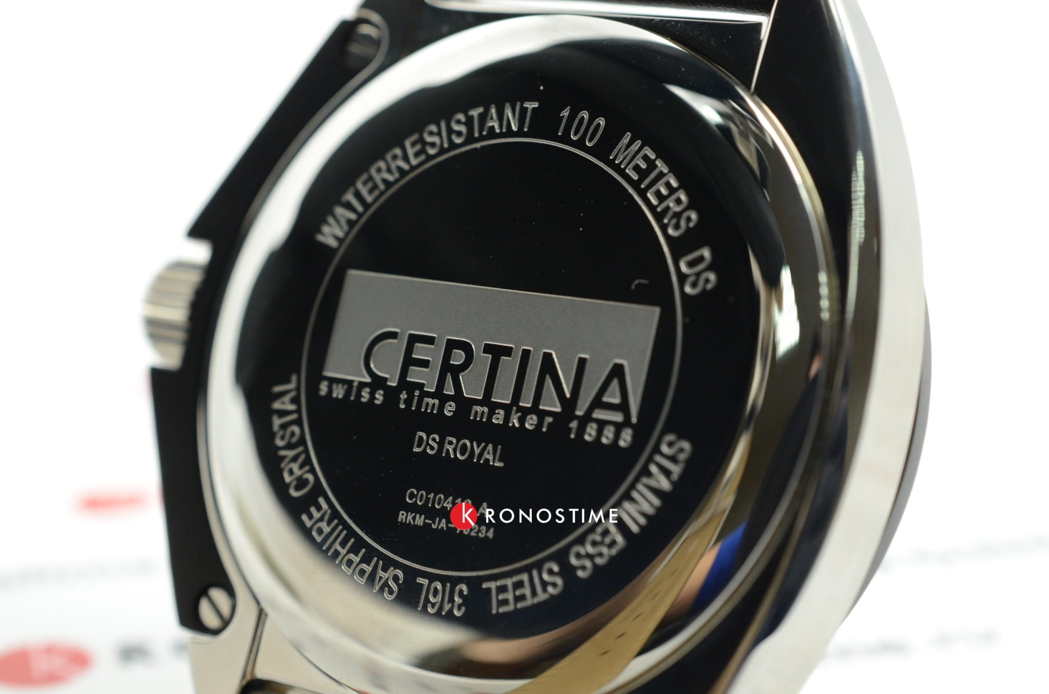 Спортивный дизайн выражен в классическом оформлении. Швейцарский кварцевый механизм ETA 955.112. Чёрный ремешок из натуральной кожи. Сапфировое стекло. Система DS ConceptDS ConceptDouble Security Concept, обозначает двойную надёжность и безупречную точность часов Certina. Двойная система защиты подразумевает обеспечение максимальной устойчивости к ударам и высоких показателей водонепроницаемости.. Частичное PVD-покрытиеPVDУльтратонкое покрытие наносится в технике вакуумного напыления, сочетает в себе нитрид титана особой прочности со слоем золота или оксида хрома. Несёт в себе декоративную или защитную функцию. корпуса. Люминесцентная подсветкаЛюминесцентное покрытиеПозволяет считывать показания времени в темноте. Производители наносят на стрелки, часовые индексы, безель или поверхность циферблата светонакопительный состав, дающий холодное свечение.. Индикация числа.