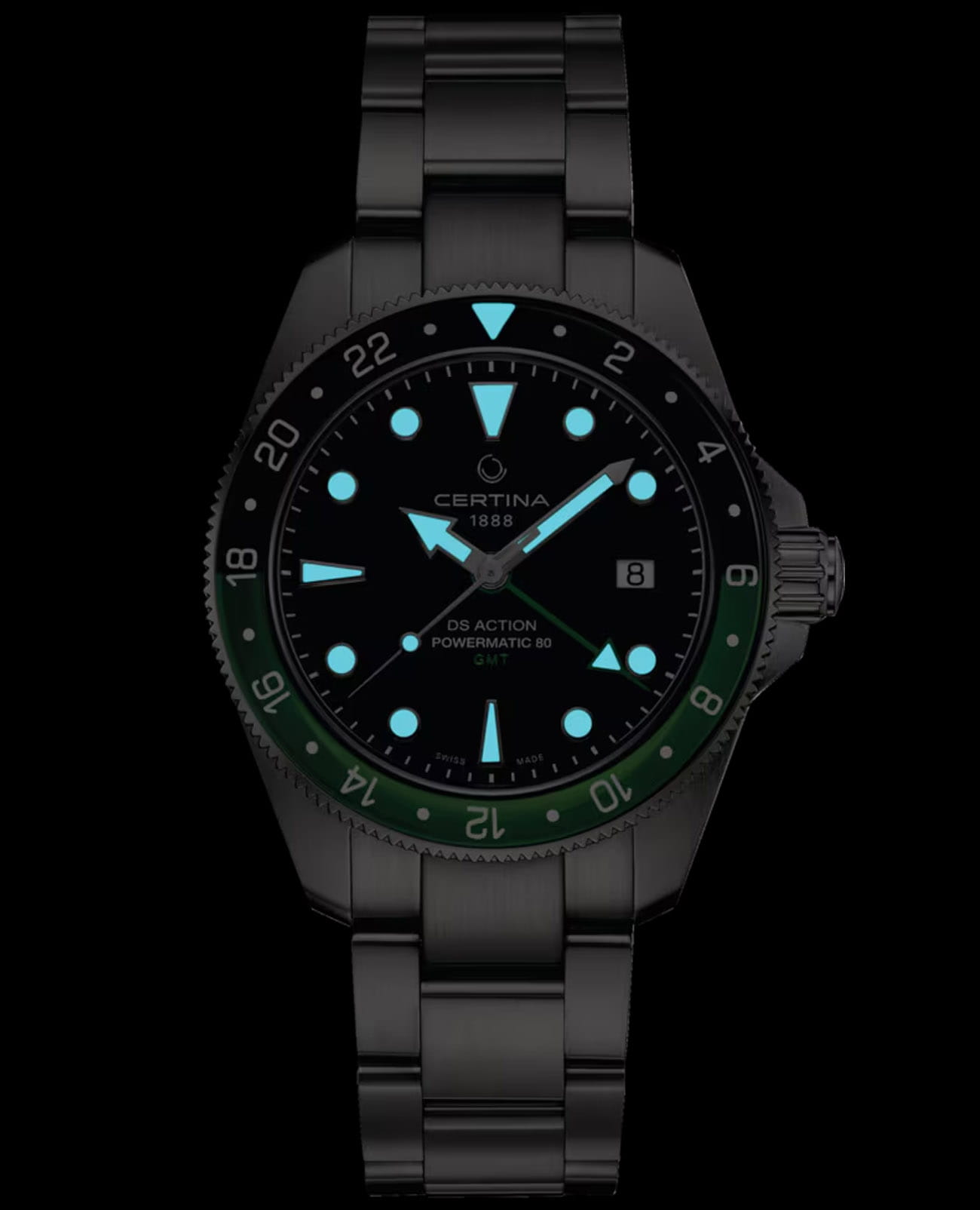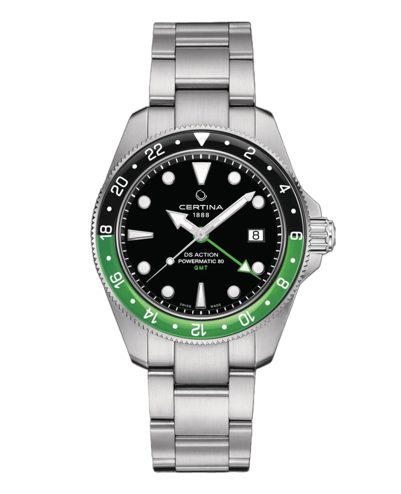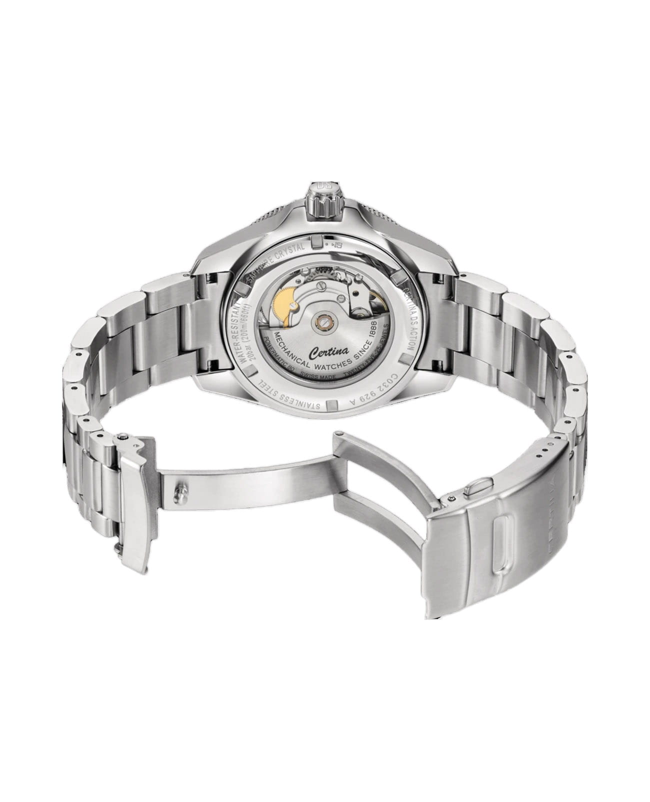 Мужские швейцарские механические часы с автоподзаводом Certina DS Action Diver C032.929.11.051.00, механический механизм (автоматический калибр) с высокой точностью. Сапфировое стеклоСапфировое стеклоПрочный и надёжный материал из кристалла сапфира синтетического происхождения, характеризующийся особой твёрдостью и устойчивостью к царапинам и повреждениям. устойчивое к появлению царапин, обладающее высокой прозрачностью. Корпус изготовлен из нержавеющей стали. БезельБезельВнешний ободок, закрепляющий стекло. В спортивных часах так называется поворотное кольцо с делениями на циферблате, выполняет роль таймера – замеряет отрезки времени на шкале. Неподвижный безель – элемент декора. Однонаправленно вращающийся безель на дайверских часах позволяет фиксировать моменты погружения и выныривания на поверхность. из стали с сапфировым стеклом. Стрелки и метки с люминесцентным покрытиемЛюминесцентное покрытиеПозволяет считывать показания времени в темноте. Производители наносят на стрелки, часовые индексы, безель или поверхность циферблата светонакопительный состав, дающий холодное свечение.. Окошко даты находится в положении 3 часа. Класс водозащиты: 200 метров, позволит плавать, нырять и заниматься другими водными видами спорта. Стальной браслет на раскладной застёжкеРаскладная застёжкаТакой тип застёжки используется только на браслетах из металла. Она никогда не раскрывается полностью, происходит разделение на 2 и более частей. Раскладывающая застёжка снизит вероятность потери часов к минимуму..