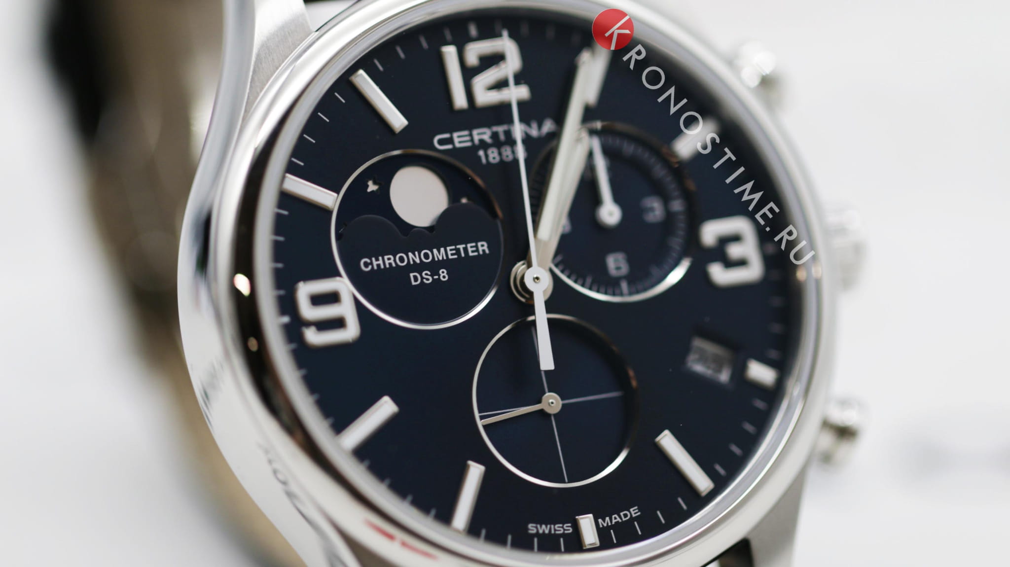 Указатель фазы Луны, одно из классических усложнений в часовом искусстве, выглядит в модели Certina DS-8 Moon Phase C033.460.16.047.00 особенно современно и минималистично. Хронометр, сертифицированный COSCСертификат COSCОфициальный сертификат, подтверждающий то, что часы ходят с особо высокой точностью. Для получения документа часы подвергаются тестовым испытаниям, разработанным швейцарским институтом тестирования хронометров COSC. Допустимая норма для механических часов -4/+6 секунд в день, для кварцевых моделей +/- 0,07 секунд в день., дополнен стильными цветовыми акцентами, подчеркивающими гармоничность дизайна.