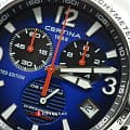 Наручные часы в спортивном стиле привлекают внимание синими деталями, что символизирует скоростное напряжение на гоночной трассе. Отличным дополнением стал браслет из нержавеющей стали. Кварцевый швейцарский механизм ETA G10.212 Precidrive™Precidrive™Инновационный кварцевый механизм Certina. Часы, оснащённые этим швейцарским калибром, приравниваются к точности к сертифицированным хронометрам, точность хода составляет +/-10 секунд в год. с повышенной точностью хода, подтверждённой сертификатом COSCСертификат COSCОфициальный сертификат, подтверждающий то, что часы ходят с особо высокой точностью. Для получения документа часы подвергаются тестовым испытаниям, разработанным швейцарским институтом тестирования хронометров COSC. Допустимая норма для механических часов -4/+6 секунд в день, для кварцевых моделей +/- 0,07 секунд в день.. Система DS ConceptDS ConceptDouble Security Concept, обозначает двойную надёжность и безупречную точность часов Certina. Двойная система защиты подразумевает обеспечение максимальной устойчивости к ударам и высоких показателей водонепроницаемости.. Двухстороннее антибликовое покрытие для стекла из сапфира. Стрелки и индексы с составом SuperLumiNovaЛюминесцентное покрытиеПозволяет считывать показания времени в темноте. Производители наносят на стрелки, часовые индексы, безель или поверхность циферблата светонакопительный состав, дающий холодное свечение.. Заводная головка с защитой. ХронографХронографФункция позволяет измерять отрезки времени с особой точностью: часы, минуты, секунды. Верным признаком хронографа является наличие на циферблате 3 дополнительных окошек-счётчиков., шкала тахиметраТахиметрРазмеченная шкала, располагается на ободке или безеле часов. Тахиметр позволяет рассчитать скорость на определённом участке пути, расстояние измеряется в километрах или милях., календарь, секундомер, индикатор EOLEOLПредставляет собой систему, уведомляющую владельца часов о необходимости замены элемента питания. За 2 недели до полного разряда батарейки секундная стрелка перестаёт ходить чётко и начинает перепрыгивать на 3-4 деления., Lap-функция измерения промежуточного времени (круга). Диаметр корпуса: 42 мм.
