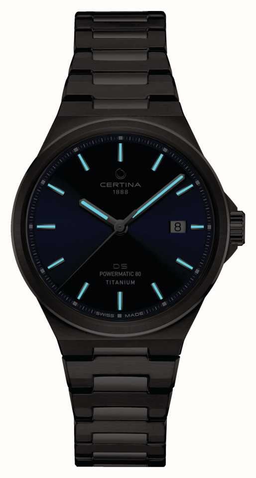 Certina DS-7 Powermatic Titanium 80 C043.407.44.041.00 – мужские часы для поклонников ярких аксессуаров. И корпус, и браслет изготовлены из высококачественной титанового сплава. Под твердым сапфировым стекломСапфировое стеклоПрочный и надёжный материал из кристалла сапфира синтетического происхождения, характеризующийся особой твёрдостью и устойчивостью к царапинам и повреждениям. с антибликовым покрытиемАнтибликовое покрытиеСлой оксида металла в 0,13-0,3 микрон, благодаря которому стекло часов не бликует и не отражает свет. Антибликовое покрытие уменьшает отражение света в 10 раз, обеспечивая отличную читаемость показателей циферблата. находится синий циферблат и на котором вы найдете окошко даты в положении 3 часа, а также маркировку, покрытую люминесцентным покрытиемЛюминесцентное покрытиеПозволяет считывать показания времени в темноте. Производители наносят на стрелки, часовые индексы, безель или поверхность циферблата светонакопительный состав, дающий холодное свечение. Super-LumiNova. Все это приводится в действие автоматическим механизмом Powermatic 80Powermatic 80Эксклюзивный калибр от швейцарской компании ETA с увеличенным запасом хода до 80 часов за счёт удлинённой заводной пружины. Характеризуется улучшенной системой спуска со сниженным трением..611 с пружиной Nivachron™Nivachron™Специально разработанный инновационный сплав Nivachron™ повышает устойчивость часов к воздействию магнитных полей.. Класс водозащиты: 100 метров, позволит плавать, нырять и заниматься другими водными видами спорта. Титановый браслет с на застёжке-бабочке с кнопкамиЗастёжка "бабочка"Такой вид застёжки дополняется предохранителями, помогающими избежать случайного раскрытия браслета. Обладают изящным исполнением. .