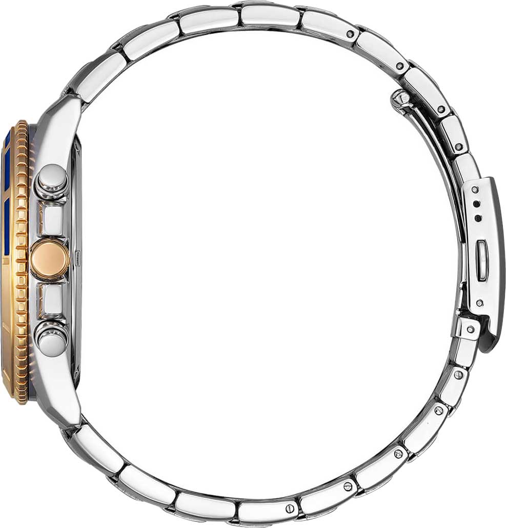Citizen Chronograph AN8206-53L часы-хронографХронографФункция позволяет измерять отрезки времени с особой точностью: часы, минуты, секунды. Верным признаком хронографа является наличие на циферблате 3 дополнительных окошек-счётчиков. с секундомеромСекундомерСекундоме́р — прибор, способный измерять интервалы времени с точностью до долей секунды.. Корпус из нержавеющей стали диаметром 46,4 мм идеально сбалансирован. Минеральное стеклоМинеральное стеклоМинеральное стекло представляет собой искусственно выращенный минерал кварца. Такое стекло отличается особой устойчивостью к повреждениям и царапинам. Уступает по некоторым качествам сапфировому стеклу. обеспечивает отличную защиту циферблата от царапин. Часы работают на основе кварцевого механизма. Стальной браслет на раскладной застёжкеРаскладная застёжкаТакой тип застёжки используется только на браслетах из металла. Она никогда не раскрывается полностью, происходит разделение на 2 и более частей. Раскладывающая застёжка снизит вероятность потери часов к минимуму. идеально дополняют дизайн часов, обеспечивая комфортное ношение. БезельБезельВнешний ободок, закрепляющий стекло. В спортивных часах так называется поворотное кольцо с делениями на циферблате, выполняет роль таймера – замеряет отрезки времени на шкале. Неподвижный безель – элемент декора. Однонаправленно вращающийся безель на дайверских часах позволяет фиксировать моменты погружения и выныривания на поверхность. с IP-покрытиемIP-покрытиеМетод ионного напыления. Демонстрирует повышенную устойчивость к истиранию, окислению и химическим веществам. Под воздействием высокого давления и температуры около 1500°C молекулы металла надёжно соединяются с частицами корпуса часов.. Секундомер с точностью показаний 1c и временем измерения 60мин. Окошко даты находится между часовыми отметками 4 и 5. 12-ти и 24-х часовой формат времени отображается на отдельном циферблате. Заводная головка с защитой. Часы обладают впечатляющей водонепроницаемостью до 100WR, что делает их идеальными для повседневной носки.