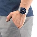 Citizen CA0690-88L — это стильные многофункциональные спортивные часы, сочетающие японское качество, современные технологии и надежность. Корпус и браслет выполнены из прочной нержавеющей стали, что обеспечивает долговечность и элегантный внешний вид, а синий циферблат с метками в виде штрихов и арабских цифр подчеркивает динамичный и современный характер модели. Часы оснащены кварцевым механизмом Citizen B612 с инновационной системой Eco-Drive, работающей на солнечной энергии, что позволяет забыть о регулярной замене батарейки и обеспечивает запас хода до 210 дней. Присутствует функция индикации заряда EOLEOLПредставляет собой систему, уведомляющую владельца часов о необходимости замены элемента питания. За 2 недели до полного разряда батарейки секундная стрелка перестаёт ходить чётко и начинает перепрыгивать на 3-4 деления. и система предотвращения перезарядки. Модель оснащена хронографомХронографФункция позволяет измерять отрезки времени с особой точностью: часы, минуты, секунды. Верным признаком хронографа является наличие на циферблате 3 дополнительных окошек-счётчиков. с секундомеромСекундомерСекундоме́р — прибор, способный измерять интервалы времени с точностью до долей секунды., измеряющим время с точностью до 1/5 секунды и максимальной продолжительностью замера до 1 часа, а также поддерживает отображение времени в 12- и 24-часовом формате. Стрелки с люминесцентным покрытиемЛюминесцентное покрытиеПозволяет считывать показания времени в темноте. Производители наносят на стрелки, часовые индексы, безель или поверхность циферблата светонакопительный состав, дающий холодное свечение. обеспечивают отличную читаемость времени даже в темное время суток. Прочное минеральное стеклоМинеральное стеклоМинеральное стекло представляет собой искусственно выращенный минерал кварца. Такое стекло отличается особой устойчивостью к повреждениям и царапинам. Уступает по некоторым качествам сапфировому стеклу. надежно защищает циферблат от царапин и повреждений, а водозащита 100WR позволяет не снимать часы во время плавания и активного отдыха. Удобное окошко даты расположено в положении 3 часа, а браслет снабжен раскладной застёжкойРаскладная застёжкаТакой тип застёжки используется только на браслетах из металла. Она никогда не раскрывается полностью, происходит разделение на 2 и более частей. Раскладывающая застёжка снизит вероятность потери часов к минимуму. для комфортного ношения. Диаметр корпуса составляет 44 мм, толщина 12,5 мм, а вес — 158 г, что делает эту модель отличным выбором для ценителей функциональности и современного стиля.