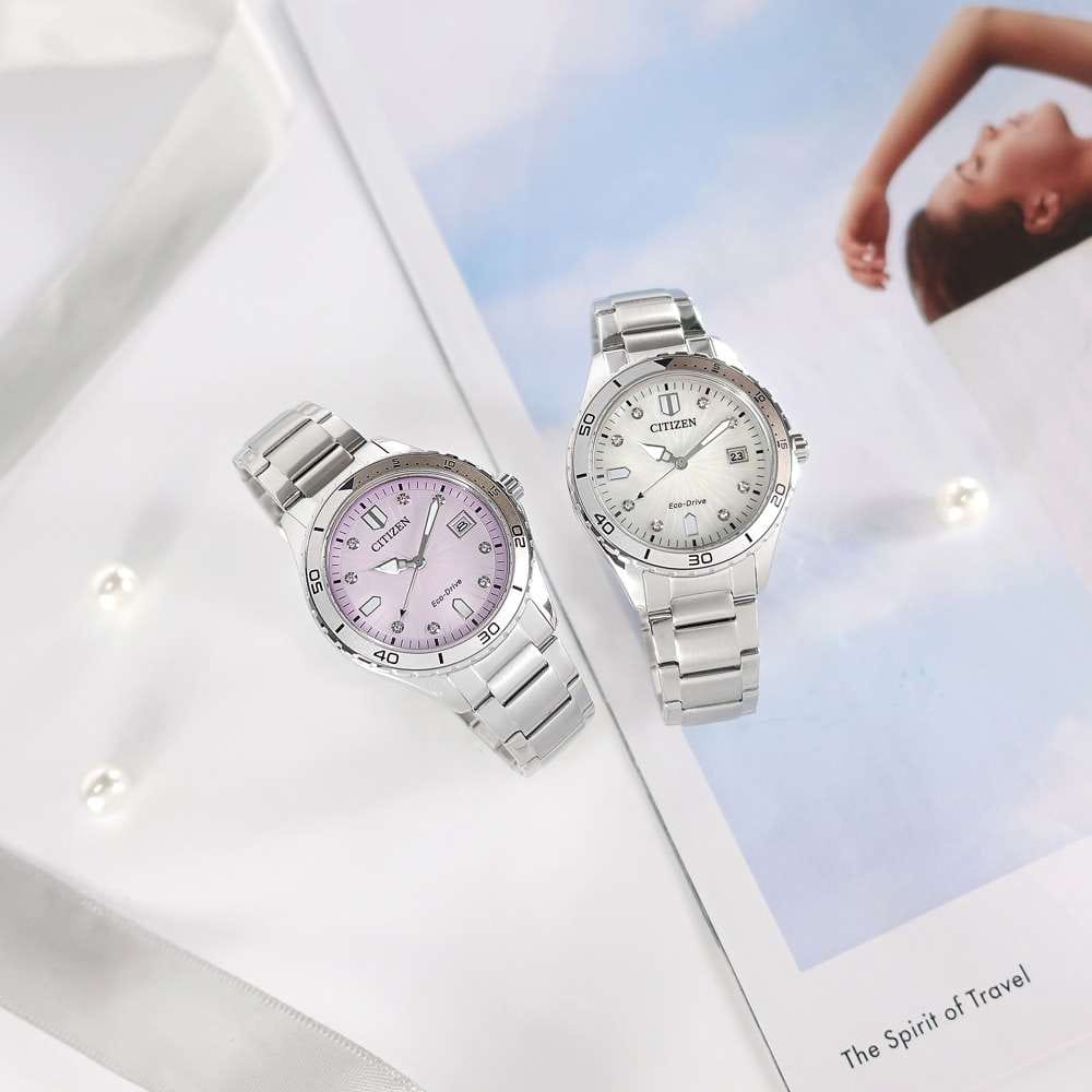 Элегантные женские часы Citizen FE6170-88X станут ярким акцентом любого образа благодаря современному дизайну и высокому качеству исполнения. Корпус диаметром 36,8 мм и толщиной 9,8 мм выполнен из прочной нержавеющей стали, что гарантирует долговечность и надежность. Особое внимание привлекает розовый циферблат, украшенный сверкающими кристаллами в виде часовых меток, что придаёт модели утончённый и изысканный вид. Кварцевый механизм с калибром Citizen J810 работает на инновационной системе Eco-Drive — часы заряжаются от любого источника света, обеспечивая запас хода до 240 дней и не требуя замены батарейки. Функции индикации заряда EOLEOLПредставляет собой систему, уведомляющую владельца часов о необходимости замены элемента питания. За 2 недели до полного разряда батарейки секундная стрелка перестаёт ходить чётко и начинает перепрыгивать на 3-4 деления.  и предотвращения перезарядки обеспечивают дополнительное удобство в использовании. Окошко даты расположено на отметке 3 часа для быстрого просмотра текущего числа. Прочное минеральное стеклоМинеральное стеклоМинеральное стекло представляет собой искусственно выращенный минерал кварца. Такое стекло отличается особой устойчивостью к повреждениям и царапинам. Уступает по некоторым качествам сапфировому стеклу. защищает циферблат от случайных царапин, а водозащита уровня 100WR позволяет использовать часы даже во время плавания. А безельБезельВнешний ободок, закрепляющий стекло. В спортивных часах так называется поворотное кольцо с делениями на циферблате, выполняет роль таймера – замеряет отрезки времени на шкале. Неподвижный безель – элемент декора. Однонаправленно вращающийся безель на дайверских часах позволяет фиксировать моменты погружения и выныривания на поверхность. часов вращается в одном направлении. Стрелки с люминесцентным покрытиемЛюминесцентное покрытиеПозволяет считывать показания времени в темноте. Производители наносят на стрелки, часовые индексы, безель или поверхность циферблата светонакопительный состав, дающий холодное свечение. обеспечивают отличную читаемость времени даже в темное время суток. Стальной браслет с раскладной застёжкойРаскладная застёжкаТакой тип застёжки используется только на браслетах из металла. Она никогда не раскрывается полностью, происходит разделение на 2 и более частей. Раскладывающая застёжка снизит вероятность потери часов к минимуму. обеспечивает комфортное и надежное крепление на запястье. Модель произведена в Японии и отличается высоким стандартом качества.