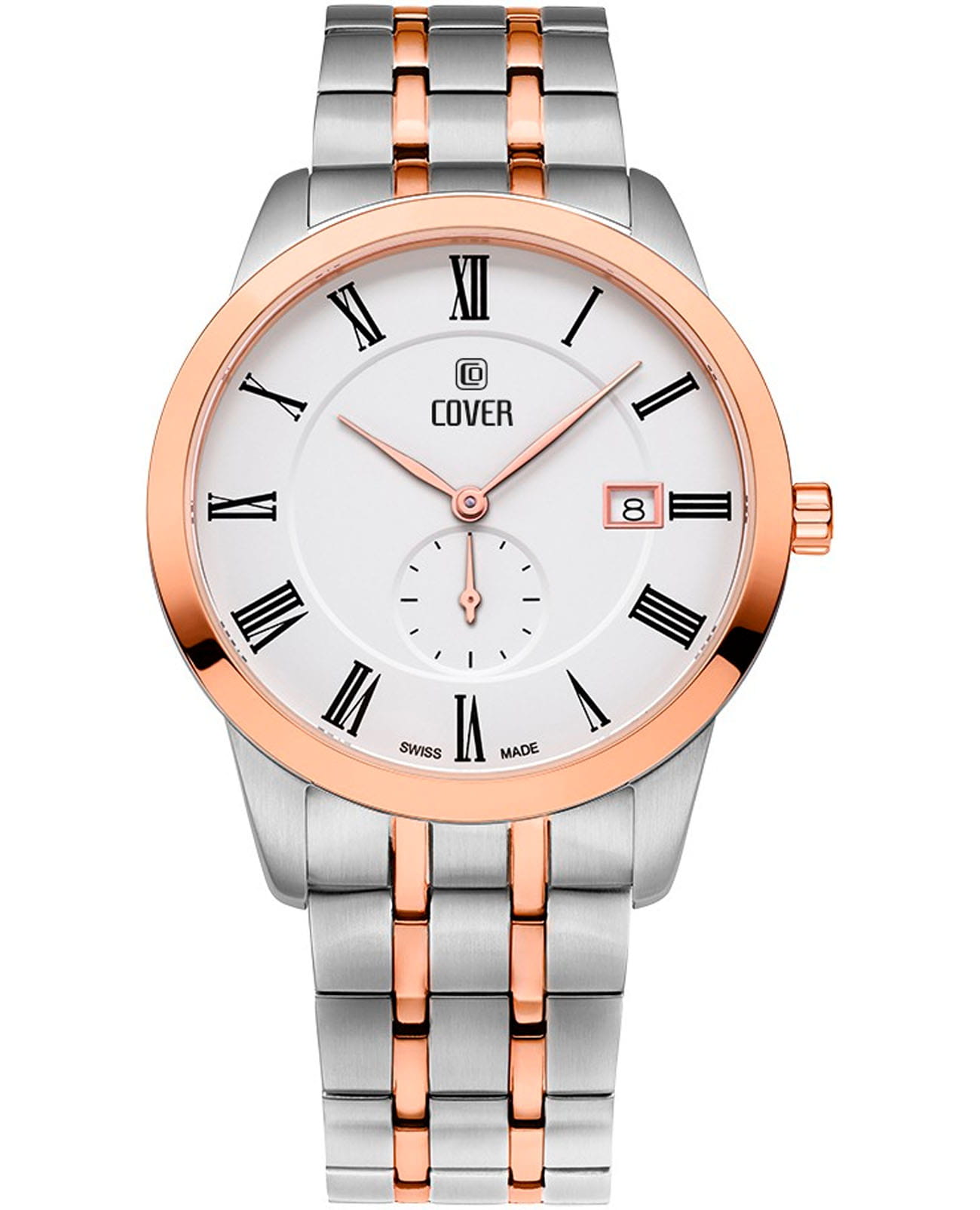 Мужские наручные часы Cover CO194.08 из коллекции Nobila Gent сочетают в себе классический дизайн и надежность современных технологий. Модель обладает круглым корпусом диаметром 40 мм, изготовленным из нержавеющей стали. Браслет с частичным PVD-покрытиемPVDУльтратонкое покрытие наносится в технике вакуумного напыления, сочетает в себе нитрид титана особой прочности со слоем золота или оксида хрома. Несёт в себе декоративную или защитную функцию., что обеспечивает высокую устойчивость к внешним воздействиям. БезельБезельВнешний ободок, закрепляющий стекло. В спортивных часах так называется поворотное кольцо с делениями на циферблате, выполняет роль таймера – замеряет отрезки времени на шкале. Неподвижный безель – элемент декора. Однонаправленно вращающийся безель на дайверских часах позволяет фиксировать моменты погружения и выныривания на поверхность. с PVD-покрытиемPVDУльтратонкое покрытие наносится в технике вакуумного напыления, сочетает в себе нитрид титана особой прочности со слоем золота или оксида хрома. Несёт в себе декоративную или защитную функцию.. Белый циферблат оснащен окном даты на «6 часах» и вынесенной секундной стрелкой на отдельном циферблате, делая модель практичной для повседневного использования. Для защиты используется сапфировое стеклоСапфировое стеклоПрочный и надёжный материал из кристалла сапфира синтетического происхождения, характеризующийся особой твёрдостью и устойчивостью к царапинам и повреждениям. с антибликовым покрытиемАнтибликовое покрытиеСлой оксида металла в 0,13-0,3 микрон, благодаря которому стекло часов не бликует и не отражает свет. Антибликовое покрытие уменьшает отражение света в 10 раз, обеспечивая отличную читаемость показателей циферблата., обеспечивающее прочную защиту от царапин и оптимальную видимость в любых условиях. Часы работают на швейцарском кварцевом механизме Ronda 6004.D, что гарантирует точное время без необходимости подзаводки. Браслет выполнен из нержавеющей стали с раскладной застежкой, гарантирующей комфортное ношение и безопасность.Водонепроницаемость часов достигает 5 атмосфер (50 метров), что позволяет использовать их в условиях легкого контакта с водой, однако не рекомендуется для плавания или водных видов спорта.