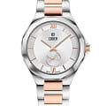 Женские швейцарские часы COVER CO211.05 — это изысканный повседневный аксессуар с оригинальным 12-угольным стальным корпусом из коллекции Cardea. Часы оснащены кварцевым калибром ETA 902.501.  Надежное минеральное стеклоМинеральное стеклоМинеральное стекло представляет собой искусственно выращенный минерал кварца. Такое стекло отличается особой устойчивостью к повреждениям и царапинам. Уступает по некоторым качествам сапфировому стеклу. защищает часы от царапин и долго сохраняет первоначальный внешний вид. Серебристый циферблат с круговой сатинированной отделкой и узором Sunray придает им элегантный вид. Накладные индексы и римские цифры VI и XII добавляют стильный акцент. Малая секундная стрелка расположена в положении «6 часов». Интегрированный браслет с PVDPVDУльтратонкое покрытие наносится в технике вакуумного напыления, сочетает в себе нитрид титана особой прочности со слоем золота или оксида хрома. Несёт в себе декоративную или защитную функцию. покрытием золотого цвета на раскладной застёжкеРаскладная застёжкаТакой тип застёжки используется только на браслетах из металла. Она никогда не раскрывается полностью, происходит разделение на 2 и более частей. Раскладывающая застёжка снизит вероятность потери часов к минимуму. обеспечивает комфорт и надежность. Часы имеют маркировку «Swiss Made», что подтверждает их высокое качество и точность.