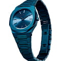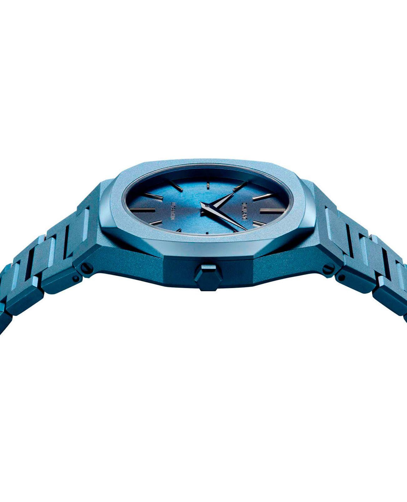 Женские наручные часы D1 Milano UTBL33 из коллекции Ultra Thin сочетают в себе элегантный дизайн и современные технологии. Модель обладает круглым корпусом диаметром 30 мм, изготовленным из нержавеющей стали с PVD-покрытиемPVDУльтратонкое покрытие наносится в технике вакуумного напыления, сочетает в себе нитрид титана особой прочности со слоем золота или оксида хрома. Несёт в себе декоративную или защитную функцию. синего цвета, что обеспечивает высокую устойчивость к внешним воздействиям. Для защиты циферблата используется сапфировое стеклоСапфировое стеклоПрочный и надёжный материал из кристалла сапфира синтетического происхождения, характеризующийся особой твёрдостью и устойчивостью к царапинам и повреждениям., которое эффективно противостоит царапинам и механическим повреждениям. Часы оснащены кварцевым механизмом Miyota 1L22, гарантирующим точное время без необходимости подзаводки. Водонепроницаемость модели достигает 5 атмосфер (50 метров), что позволяет использовать их при контакте с водой, например, во время мытья рук или дождя. Браслет выполнен из того же материала с раскладной застежкойРаскладной замокДанный вариант застежки используется только на часах с металлическим браслетом. Отличительная особенность такого крепления в том, что длина браслета становится универсальной и вы можете самостоятельно отрегулировать нужный вам размер – застежка просто двигается по браслету часов., обеспечивающей комфортное ношение и безопасность. Циферблат с узором синего цвета придает часам особую изысканность и делает их идеальным выбором для повседневного использования или особых случаев.