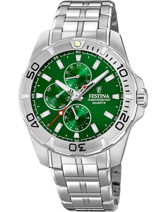 Циферблаты с несколькими счетчиками, спортивный дизайн - данная коллекция позволит вам подобрать часы себе или на подарок, который обязательно понравится. Кварцевый механизм с высокой точностью. Минеральное стеклоМинеральное стеклоМинеральное стекло представляет собой искусственно выращенный минерал кварца. Такое стекло отличается особой устойчивостью к повреждениям и царапинам. Уступает по некоторым качествам сапфировому стеклу. устойчивое к появлению царапин, обладающее высокой прозрачностью. Круглый корпус из гипоаллергенной нержавеющей стали. Вращающийся безельБезельВнешний ободок, закрепляющий стекло. В спортивных часах так называется поворотное кольцо с делениями на циферблате, выполняет роль таймера – замеряет отрезки времени на шкале. Неподвижный безель – элемент декора. Однонаправленно вращающийся безель на дайверских часах позволяет фиксировать моменты погружения и выныривания на поверхность.. Класс водозащиты: 100 метров, позволит защитить корпус от случайных брызг или капель дождя. Метки в виде штрихов. 12-ти и 24-х часовой формат времени, дата и день недели вынесены на отдельные циферблаты. Стрелки с частично удаленным металлом и метки с нанесенным люминесцентным покрытиемЛюминесцентное покрытиеПозволяет считывать показания времени в темноте. Производители наносят на стрелки, часовые индексы, безель или поверхность циферблата светонакопительный состав, дающий холодное свечение., которое светится в темноте после непродолжительной зарядки на свету. Корпус часов изготовлен из нержавеющей стали 316L. Браслет с раскладной застёжкойРаскладная застёжкаТакой тип застёжки используется только на браслетах из металла. Она никогда не раскрывается полностью, происходит разделение на 2 и более частей. Раскладывающая застёжка снизит вероятность потери часов к минимуму..