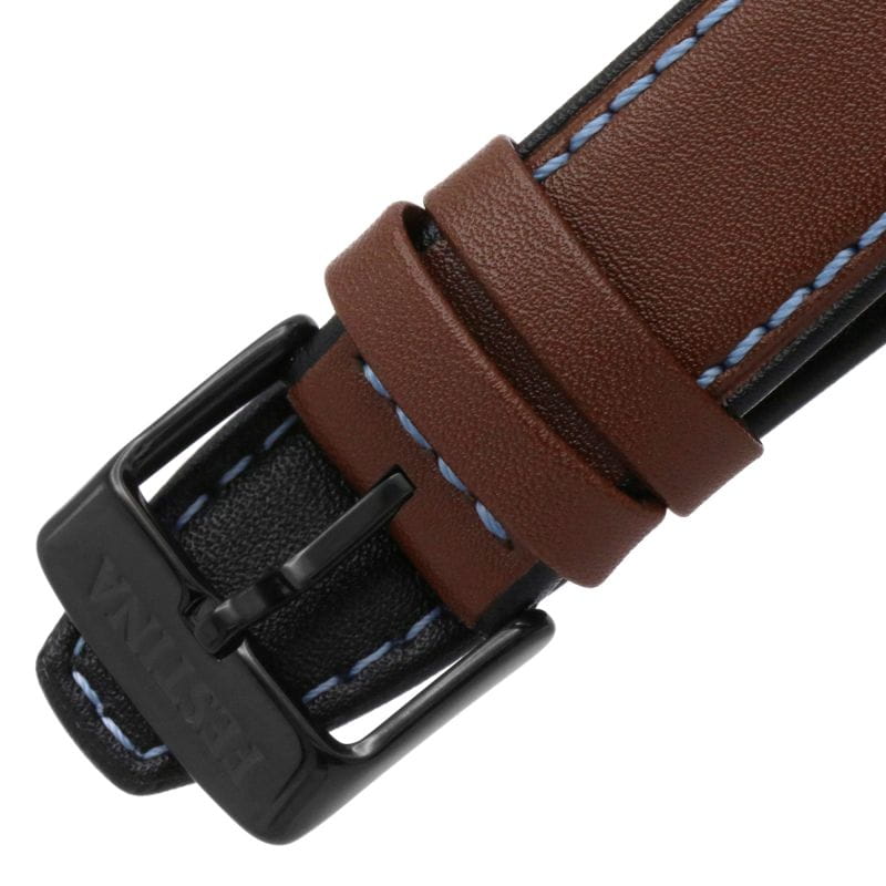 Часы-хронографХронографФункция позволяет измерять отрезки времени с особой точностью: часы, минуты, секунды. Верным признаком хронографа является наличие на циферблате 3 дополнительных окошек-счётчиков.. Кварцевый механизм с высокой точностью. Минеральное стеклоМинеральное стеклоМинеральное стекло представляет собой искусственно выращенный минерал кварца. Такое стекло отличается особой устойчивостью к повреждениям и царапинам. Уступает по некоторым качествам сапфировому стеклу. устойчивое к появлению царапин, обладающее высокой прозрачностью. Класс водозащиты: 100 метров, позволит плавать, нырять и заниматься другими водными видами спорта. Стрелки и метки с люминесцентным покрытиемЛюминесцентное покрытиеПозволяет считывать показания времени в темноте. Производители наносят на стрелки, часовые индексы, безель или поверхность циферблата светонакопительный состав, дающий холодное свечение.. Корпус часов изготовлен из нержавеющей стали c PVD-покрытиемPVDУльтратонкое покрытие наносится в технике вакуумного напыления, сочетает в себе нитрид титана особой прочности со слоем золота или оксида хрома. Несёт в себе декоративную или защитную функцию.. Кожаный ремешок с классической застежкой.