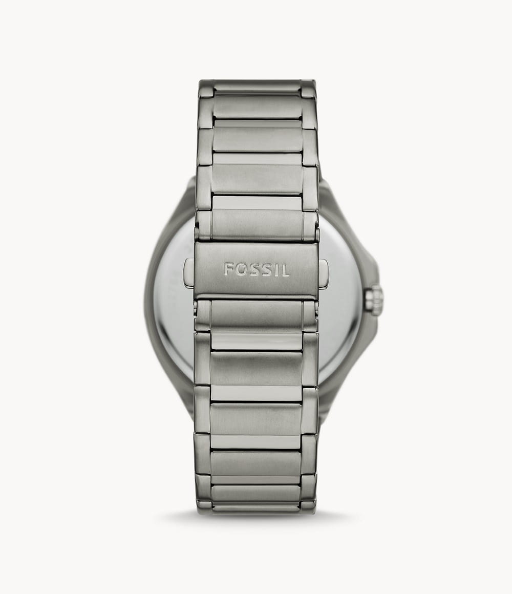 Мужские наручные часы с минеральным стекломМинеральное стеклоМинеральное стекло представляет собой искусственно выращенный минерал кварца. Такое стекло отличается особой устойчивостью к повреждениям и царапинам. Уступает по некоторым качествам сапфировому стеклу. Fossil Evanston BQ2767, кварцевый механизм с высокой точностью. Класс водозащиты: 50 метров, позволит защитить корпус от случайных брызг или капель дождя. Корпус часов изготовлен из стали. Стальной браслет на раскладной застёжкеРаскладная застёжкаТакой тип застёжки используется только на браслетах из металла. Она никогда не раскрывается полностью, происходит разделение на 2 и более частей. Раскладывающая застёжка снизит вероятность потери часов к минимуму.. Стрелки и метки с люминесцентным покрытиемЛюминесцентное покрытиеПозволяет считывать показания времени в темноте. Производители наносят на стрелки, часовые индексы, безель или поверхность циферблата светонакопительный состав, дающий холодное свечение..