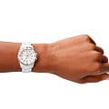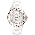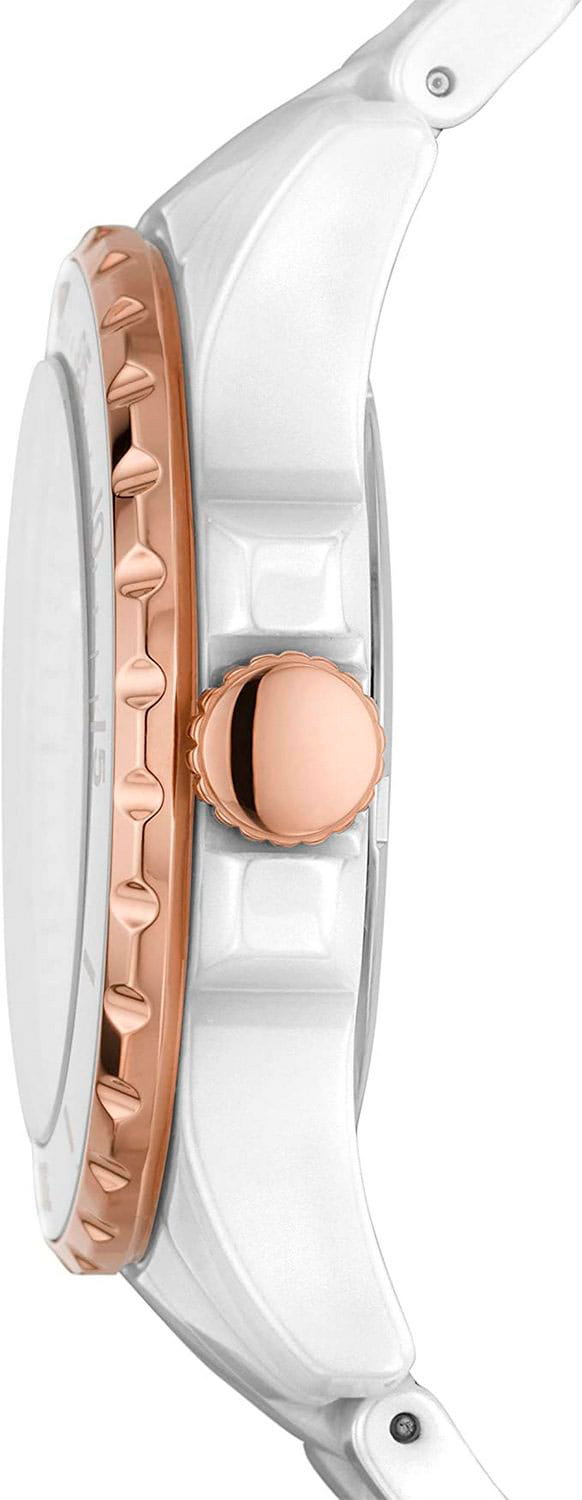 Женские наручные часы Fossil на браслете Fossil FB-01 CE1107, кварцевый механизм с высокой точностью. Класс водозащиты: 100 метров, позволит плавать, нырять и заниматься другими водными видами спорта. Стрелки с люминесцентным покрытиемЛюминесцентное покрытиеПозволяет считывать показания времени в темноте. Производители наносят на стрелки, часовые индексы, безель или поверхность циферблата светонакопительный состав, дающий холодное свечение.. Циферблат украшен кристаллами. Корпус часов изготовлен из стали. Керамический браслет с раскладной застёжкойРаскладная застёжкаТакой тип застёжки используется только на браслетах из металла. Она никогда не раскрывается полностью, происходит разделение на 2 и более частей. Раскладывающая застёжка снизит вероятность потери часов к минимуму..