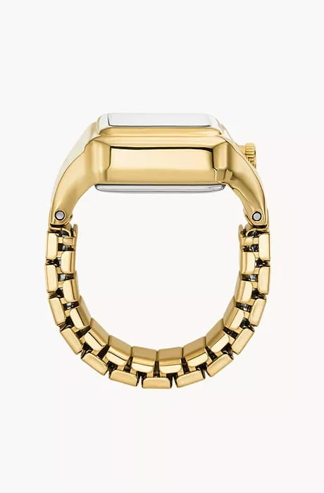 Уникальные часы-кольцо с минеральным стекломМинеральное стеклоМинеральное стекло представляет собой искусственно выращенный минерал кварца. Такое стекло отличается особой устойчивостью к повреждениям и царапинам. Уступает по некоторым качествам сапфировому стеклу. Fossil Raquel Ring ES5343, кварцевый механизм с высокой точностью. Корпус и браслет часов изготовлены из нержавеющей стали с IP-покрытиемIP-покрытиеМетод ионного напыления. Демонстрирует повышенную устойчивость к истиранию, окислению и химическим веществам. Под воздействием высокого давления и температуры около 1500°C молекулы металла надёжно соединяются с частицами корпуса часов.. Класс водозащиты: 50 метров, позволит защитить корпус от случайных брызг или капель дождя. Циферблат выполнен с метками в виде штрихов. С помощью расширительного ремешка Вы сможете надеть модель на любой палец.