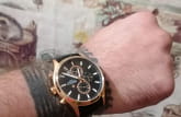 Мужские английские часы c хронографомХронографФункция позволяет измерять отрезки времени с особой точностью: часы, минуты, секунды. Верным признаком хронографа является наличие на циферблате 3 дополнительных окошек-счётчиков. Greenwich Navigator GW 053.41.31, кварцевый механизм с высокой точностью. Класс водозащиты: 100 метров, позволит плавать, нырять и заниматься другими водными видами спорта. Корпус часов изготовлен из стали с PVD-покрытиемPVDУльтратонкое покрытие наносится в технике вакуумного напыления, сочетает в себе нитрид титана особой прочности со слоем золота или оксида хрома. Несёт в себе декоративную или защитную функцию.. Минеральное стеклоМинеральное стеклоМинеральное стекло представляет собой искусственно выращенный минерал кварца. Такое стекло отличается особой устойчивостью к повреждениям и царапинам. Уступает по некоторым качествам сапфировому стеклу. устойчивое к мелким механическим повреждениям. Стрелки и метки с люминесцентным покрытиемЛюминесцентное покрытиеПозволяет считывать показания времени в темноте. Производители наносят на стрелки, часовые индексы, безель или поверхность циферблата светонакопительный состав, дающий холодное свечение.. Кожаный ремешок на стандартной застёжке. СекундомерСекундомерСекундоме́р — прибор, способный измерять интервалы времени с точностью до долей секунды.. Окошко даты находится в положении между 4 и 5 часов.