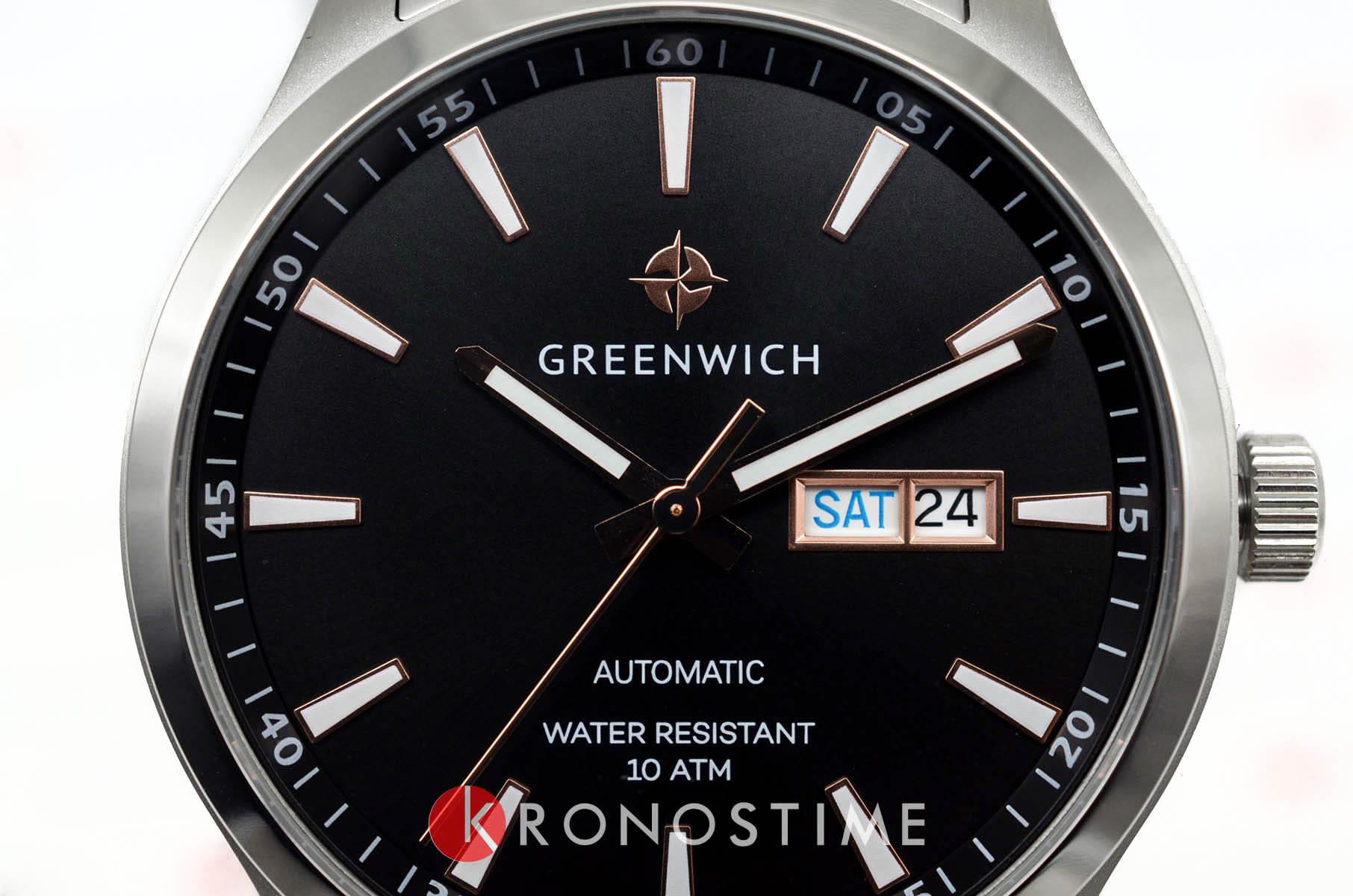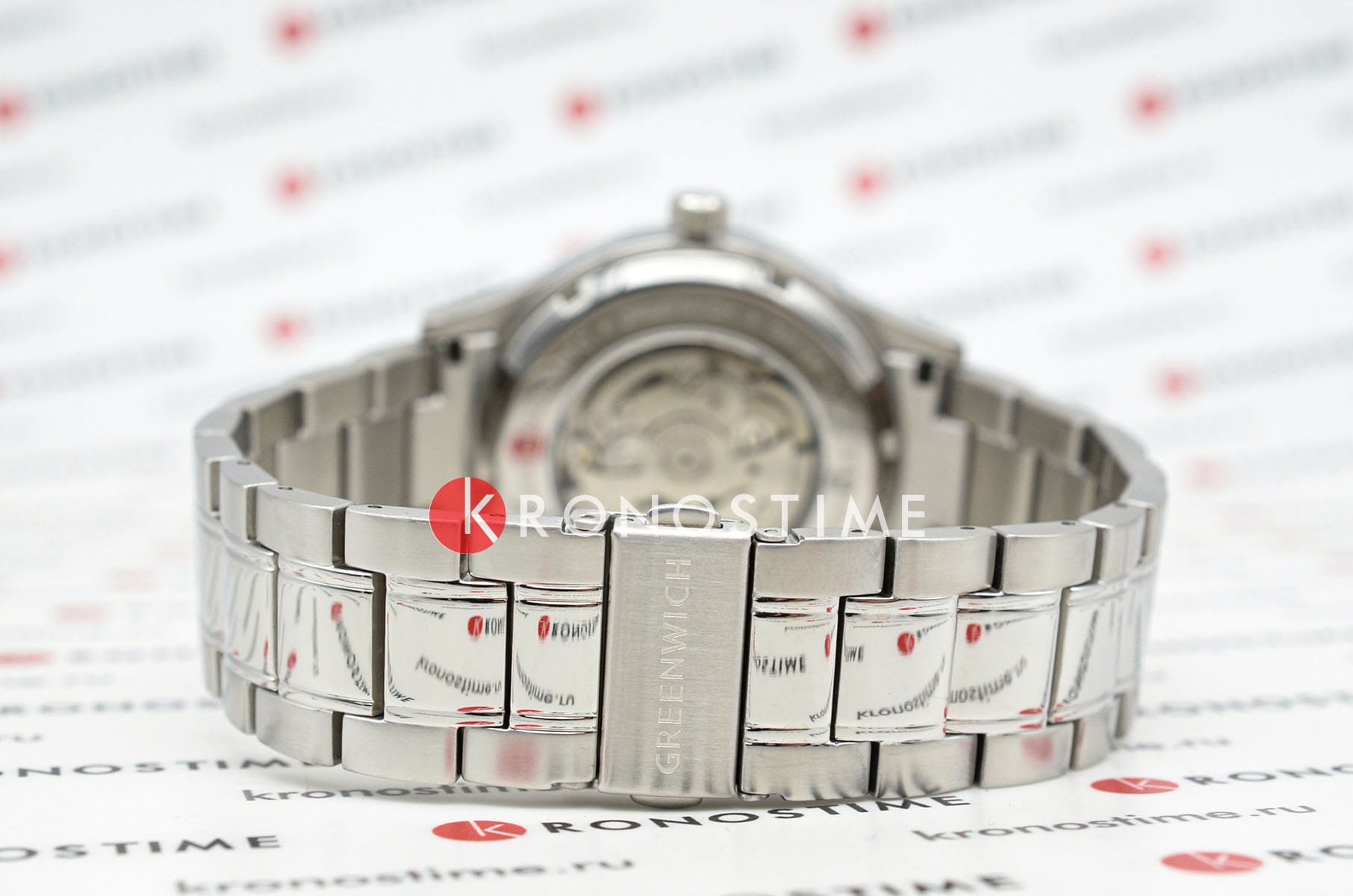 Мужские часы Greenwich Good Luck GW 054.10.30, механический механизм (автоматический калибр) с минеральным стекломМинеральное стеклоМинеральное стекло представляет собой искусственно выращенный минерал кварца. Такое стекло отличается особой устойчивостью к повреждениям и царапинам. Уступает по некоторым качествам сапфировому стеклу.. Корпус из нержавеющей стали. Стрелки и метки с люминесцентным покрытиемЛюминесцентное покрытиеПозволяет считывать показания времени в темноте. Производители наносят на стрелки, часовые индексы, безель или поверхность циферблата светонакопительный состав, дающий холодное свечение.. Окошко даты и дня недели находится в положении 3 часа. Класс водозащиты: 100 метров, позволит плавать, нырять и заниматься другими водными видами спорта. Стальной браслет на раскладной застёжкеРаскладная застёжкаТакой тип застёжки используется только на браслетах из металла. Она никогда не раскрывается полностью, происходит разделение на 2 и более частей. Раскладывающая застёжка снизит вероятность потери часов к минимуму..