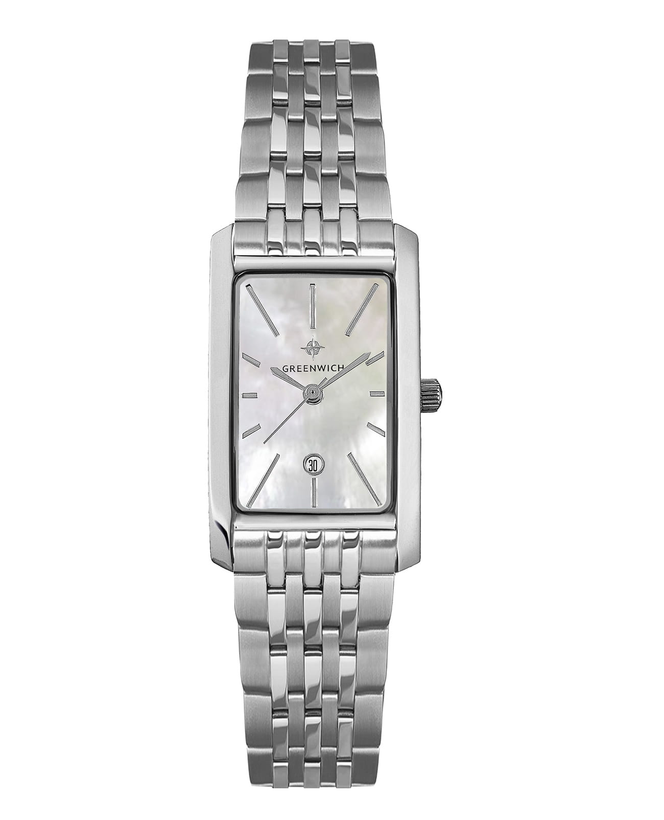 Английские женские кварцевые часы с прямоугольным циферблатом Greenwich Vesta GW 511.10.13, кварцевый механизм с высокой точностью. Класс водозащиты: 50 метров, позволит защитить корпус от случайных брызг или капель дождя. Корпус часов изготовлен из стали серебристого цвета.