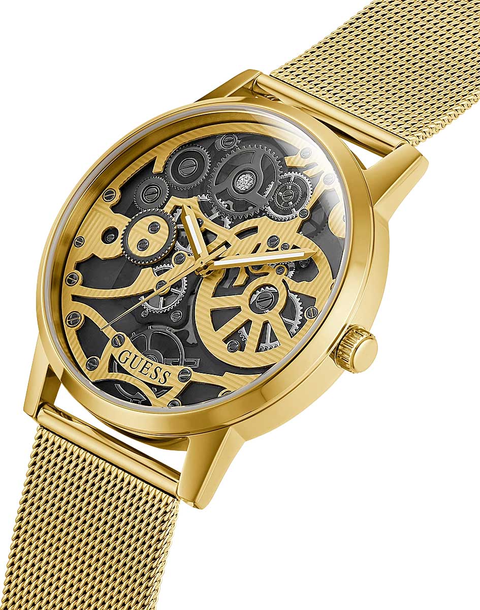 Мужские наручные часы с минеральным стекломМинеральное стеклоМинеральное стекло представляет собой искусственно выращенный минерал кварца. Такое стекло отличается особой устойчивостью к повреждениям и царапинам. Уступает по некоторым качествам сапфировому стеклу. Guess Gadget GW0538G2, кварцевый механизм с высокой точностью. Класс водозащиты: 50 метров, позволит защитить корпус от случайных брызг или капель дождя. Корпус часов изготовлен из стали с IP-покрытиемIP-покрытиеМетод ионного напыления. Демонстрирует повышенную устойчивость к истиранию, окислению и химическим веществам. Под воздействием высокого давления и температуры около 1500°C молекулы металла надёжно соединяются с частицами корпуса часов.. Стальной браслет на раскладной застёжкеРаскладная застёжкаТакой тип застёжки используется только на браслетах из металла. Она никогда не раскрывается полностью, происходит разделение на 2 и более частей. Раскладывающая застёжка снизит вероятность потери часов к минимуму. с IP-покрытиемIP-покрытиеМетод ионного напыления. Демонстрирует повышенную устойчивость к истиранию, окислению и химическим веществам. Под воздействием высокого давления и температуры около 1500°C молекулы металла надёжно соединяются с частицами корпуса часов..