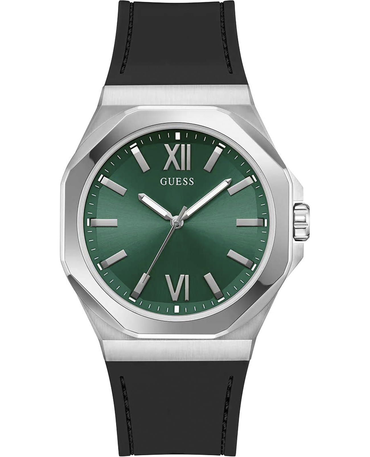 Мужские наручные часы Guess Sport GW0805G1 с минеральным стекломМинеральное стеклоМинеральное стекло представляет собой искусственно выращенный минерал кварца. Такое стекло отличается особой устойчивостью к повреждениям и царапинам. Уступает по некоторым качествам сапфировому стеклу., кварцевый механизм с высокой точностью. Корпус часов изготовлен из нержавеющей стали. Стрелки с люминесцентным покрытиемЛюминесцентное покрытиеПозволяет считывать показания времени в темноте. Производители наносят на стрелки, часовые индексы, безель или поверхность циферблата светонакопительный состав, дающий холодное свечение.. Класс водозащиты: 50 метров, позволит защитить корпус от случайных брызг или капель дождя. Силиконовый ремешок на стандартной застежке.